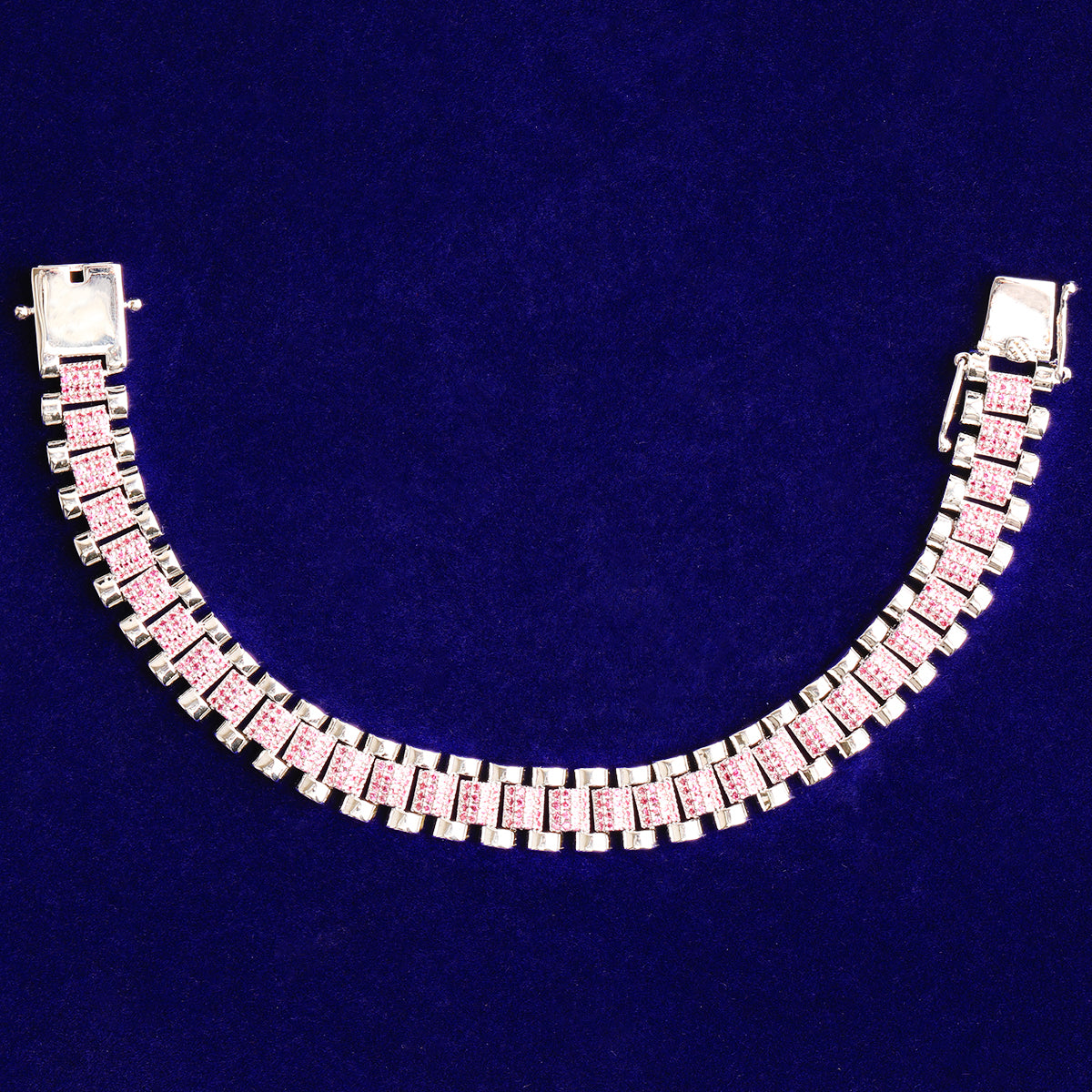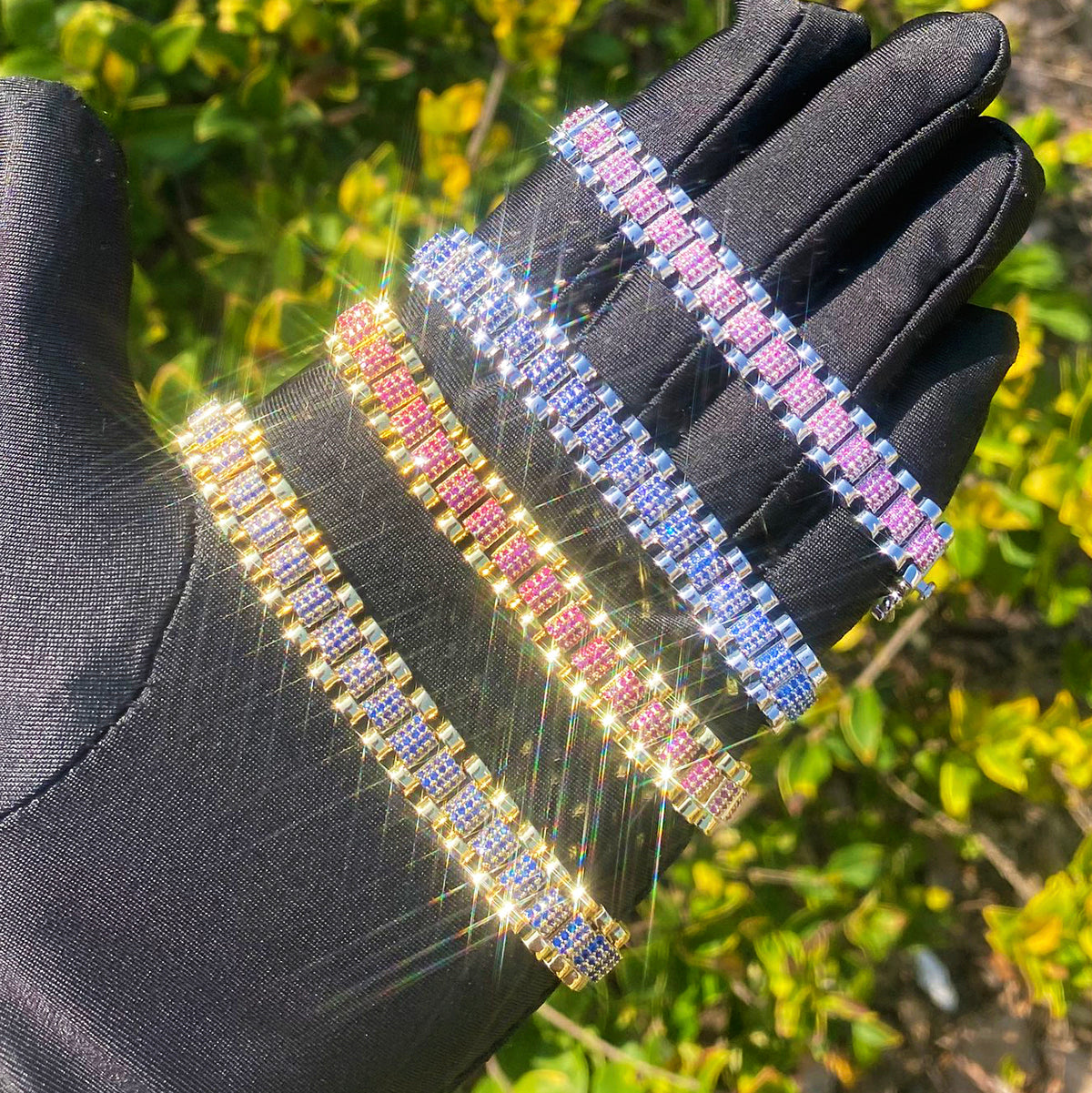 Bubble Letter Iced Out Silver Watch Belt Link Bracelet for Men Real Gold Plated Cubic Zirconia Hip Hop Jewelry