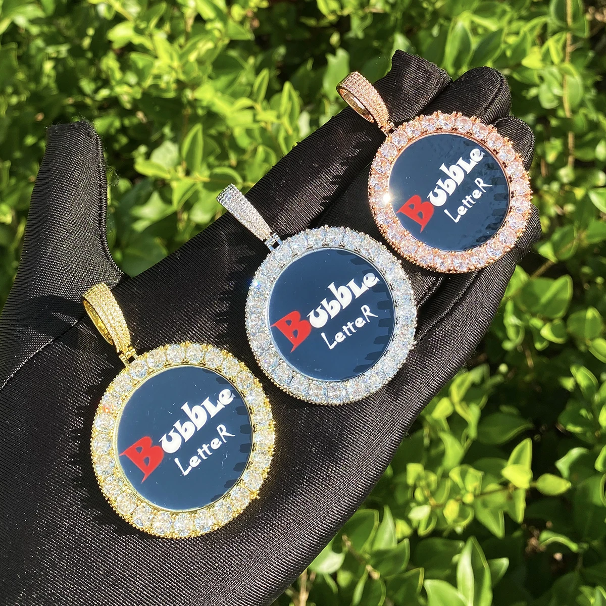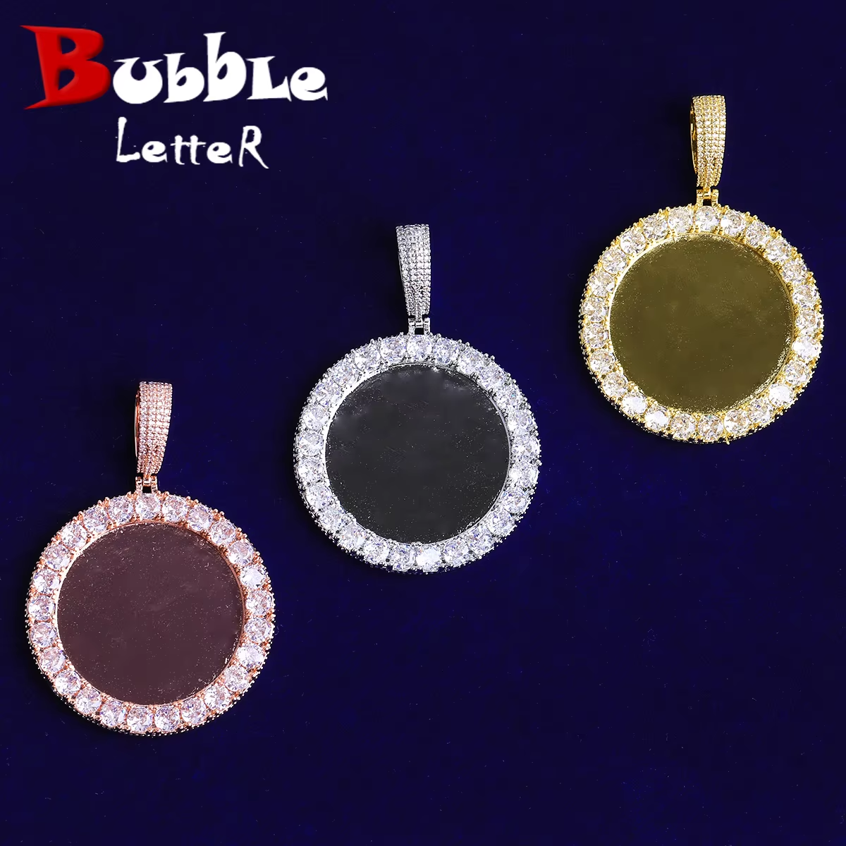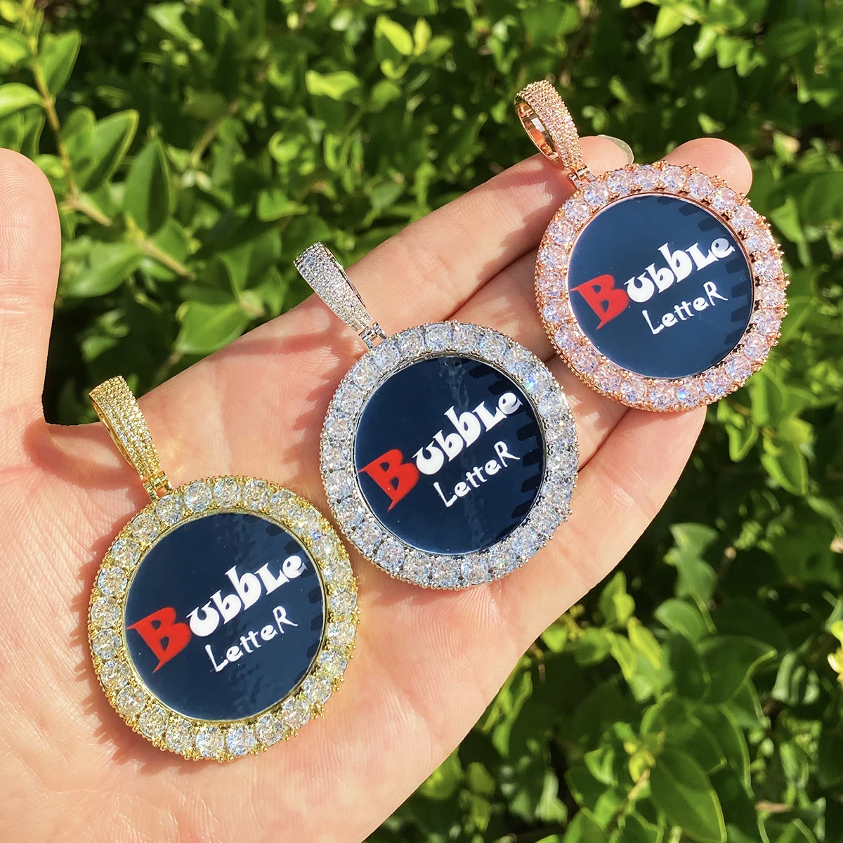Bubble Letter Iced Out Solid Back Custom Photo Pendant for Men 5A Cubic Zirconia Prong Setting Hip Hop Jewelry