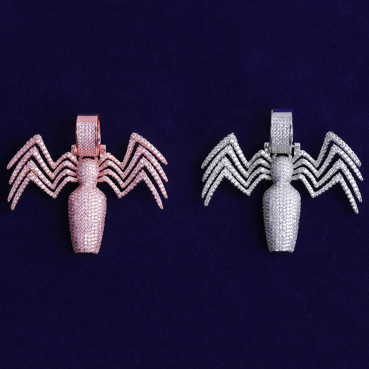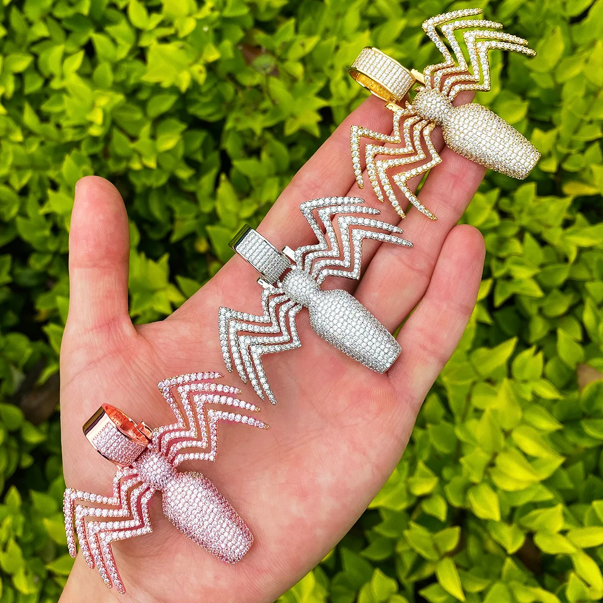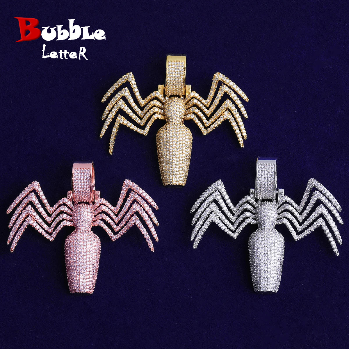 Bubble Letter Iced Out Spider Bottle Necklace Pendant for Men Real Gold Plated Cubic Zirconia Hip Hop Jewelry