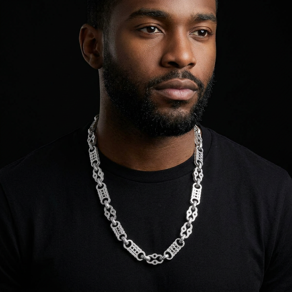 Bubble Letter Iced Out Star Bar Chain for Men Necklace Choker Real Gold Plated 5A Cubic Zirconia Hip Hop Jewelry Albert Clasp
