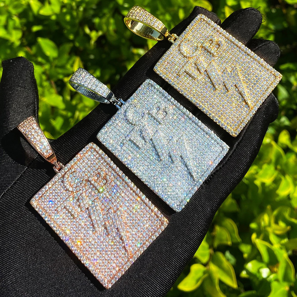 Bubble Letter Iced Out TCB Lighting Bolt Necklace Pendant for Men Prong Setting Real Gold Plated Hip Hop Jewelry