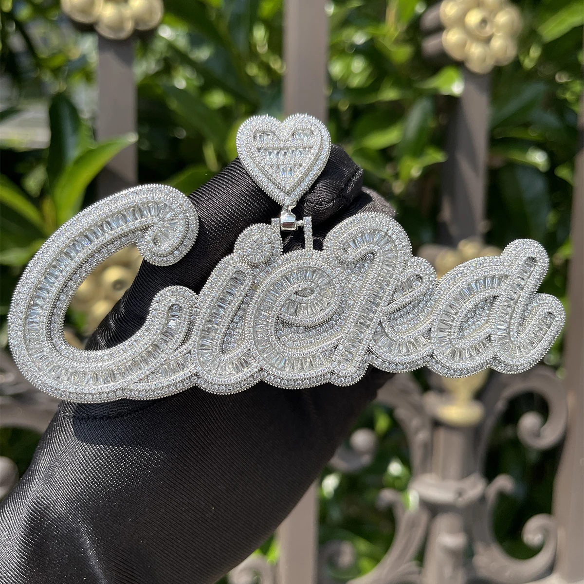 Bubble Letter Jewelry Baguette Customized Name Necklace for Women Iced Out Pendant Hip Hop Charms 2022 Trend Best Selling