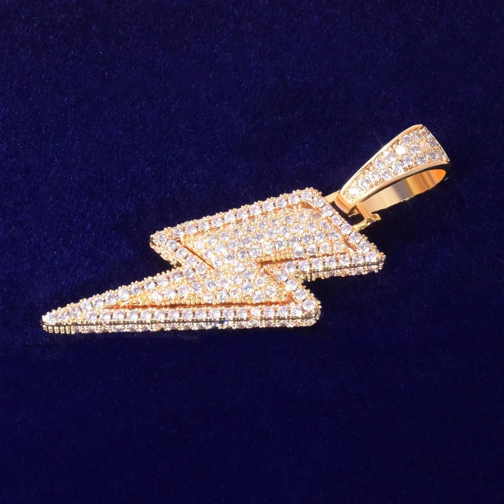 Bubble Letter Lightning Shape Pendant Necklace Bling Cubic Zircon Men's Hip Hop Rock Jewelry