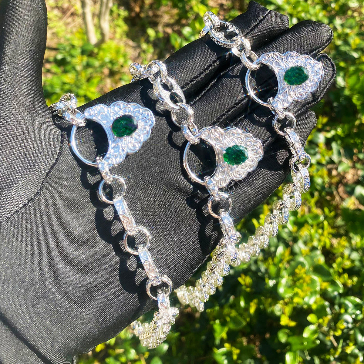 Bubble Letter Luxury Chain Necklace for Women with Emerald Pendant Real Gold Plated Copper Cubic Zirconia Hip Hop Jewelry
