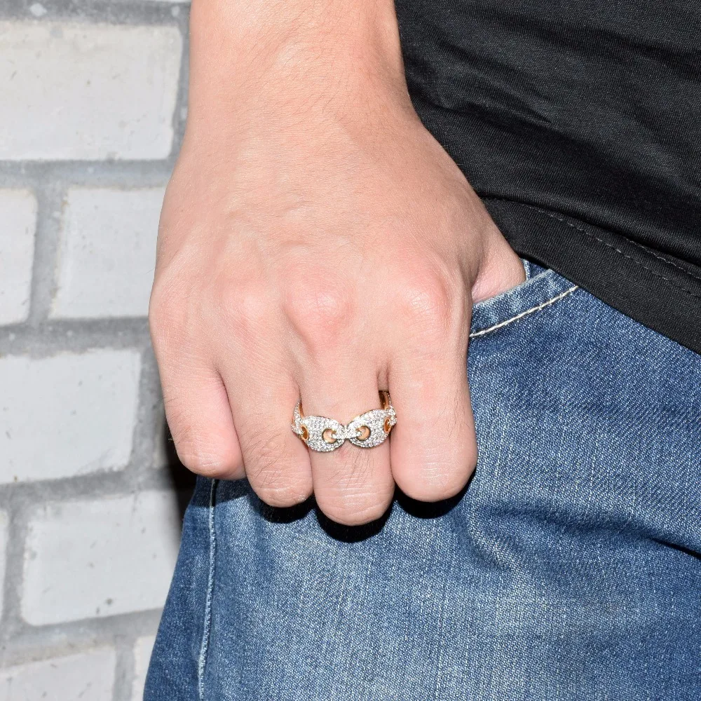Bubble Letter Men's Cuban Link Rings Charms Real Gold Plated BLING Cubic Zircon Fashion Hip Hop Jewelry Christmas Gift