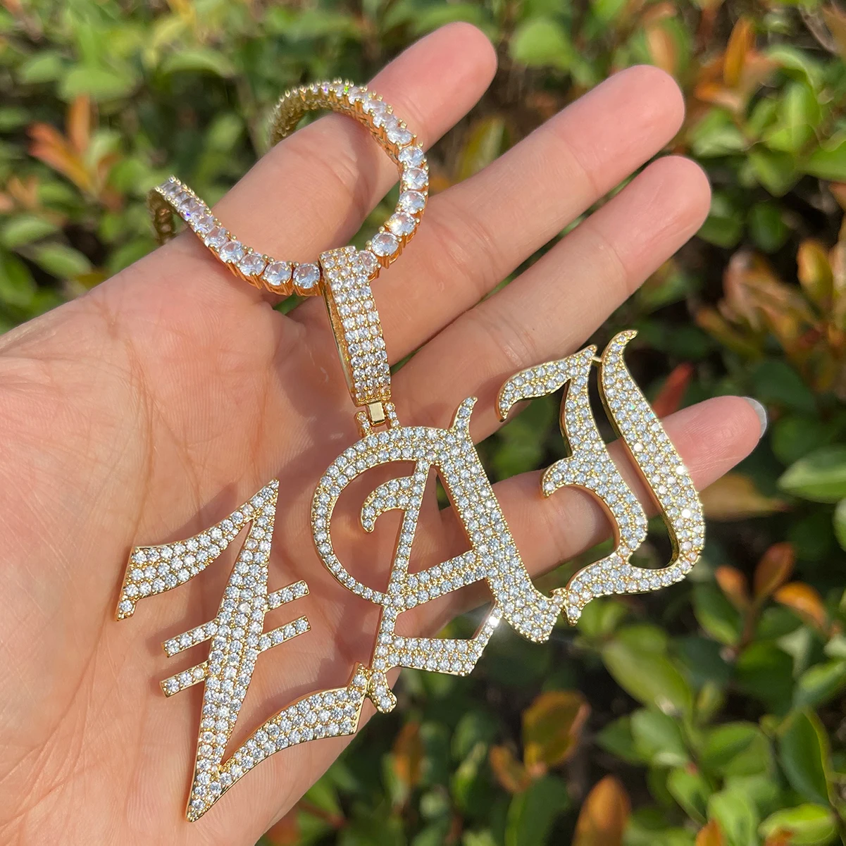 Bubble Letter Old Vintage English Font Customized Name Necklace for Women Personalized Cursive Pendant Hip Hop Jewelry