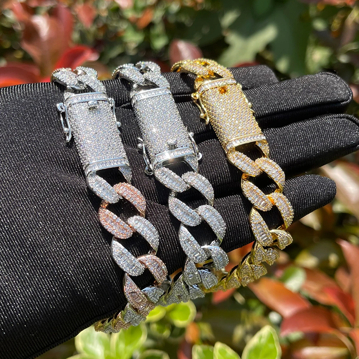 Bubble Letter Prong Bracelet for Women Cuban Link Charm Baguette Iced Out Cubic Zirconia Hip Hop Fashion Jewelry