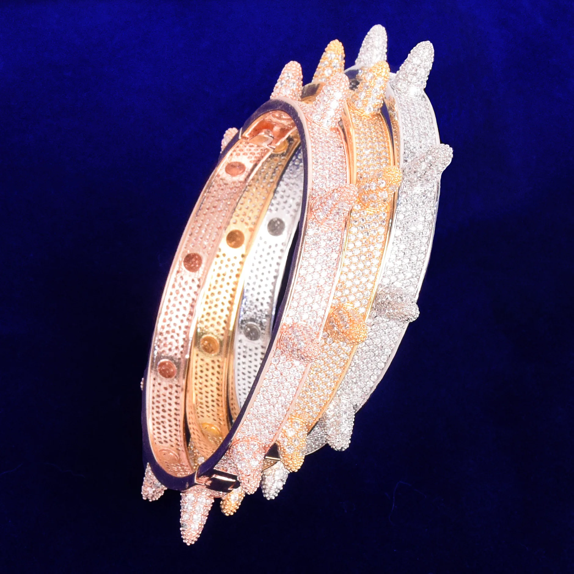 Bubble Letter Rivet Spiked Bangle Copper Material Full Zircon Hip Hop Iced Out Bracelet Rock Punk Jewelry 2022 Trend Free Ship