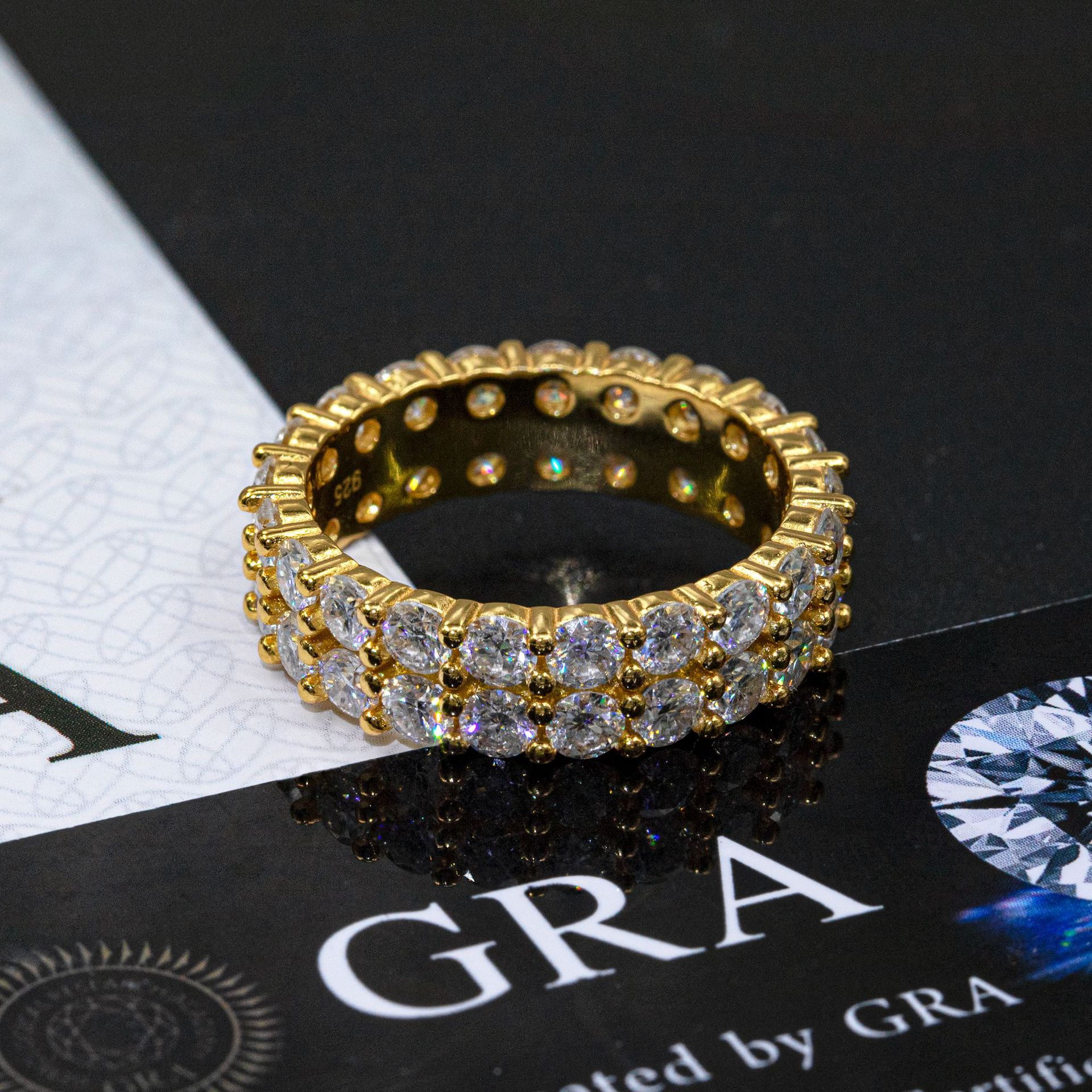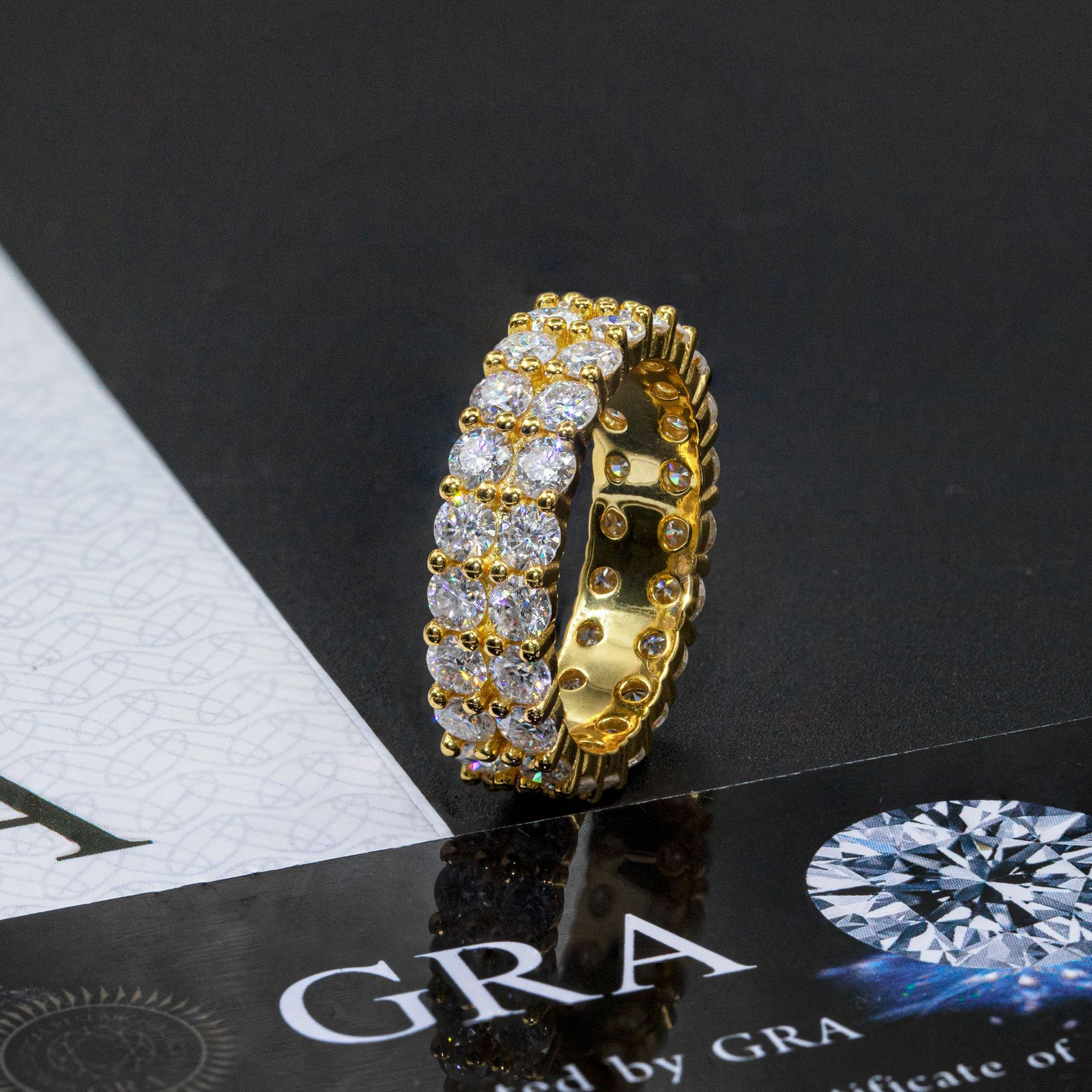 Bubble Letter Silver Moissanite Double Layers Tennis Ring for Men Hip Hop Jewelry