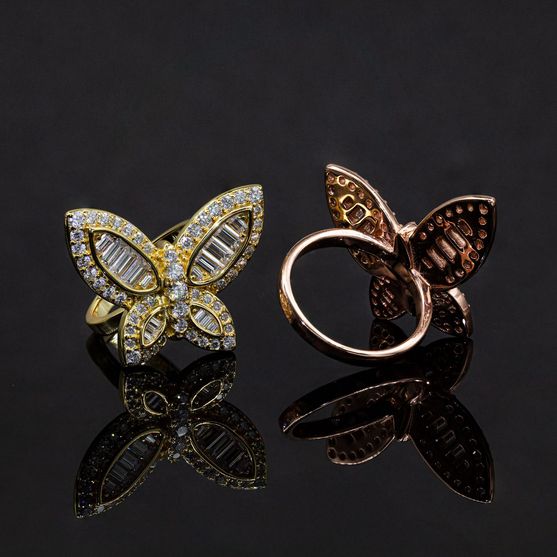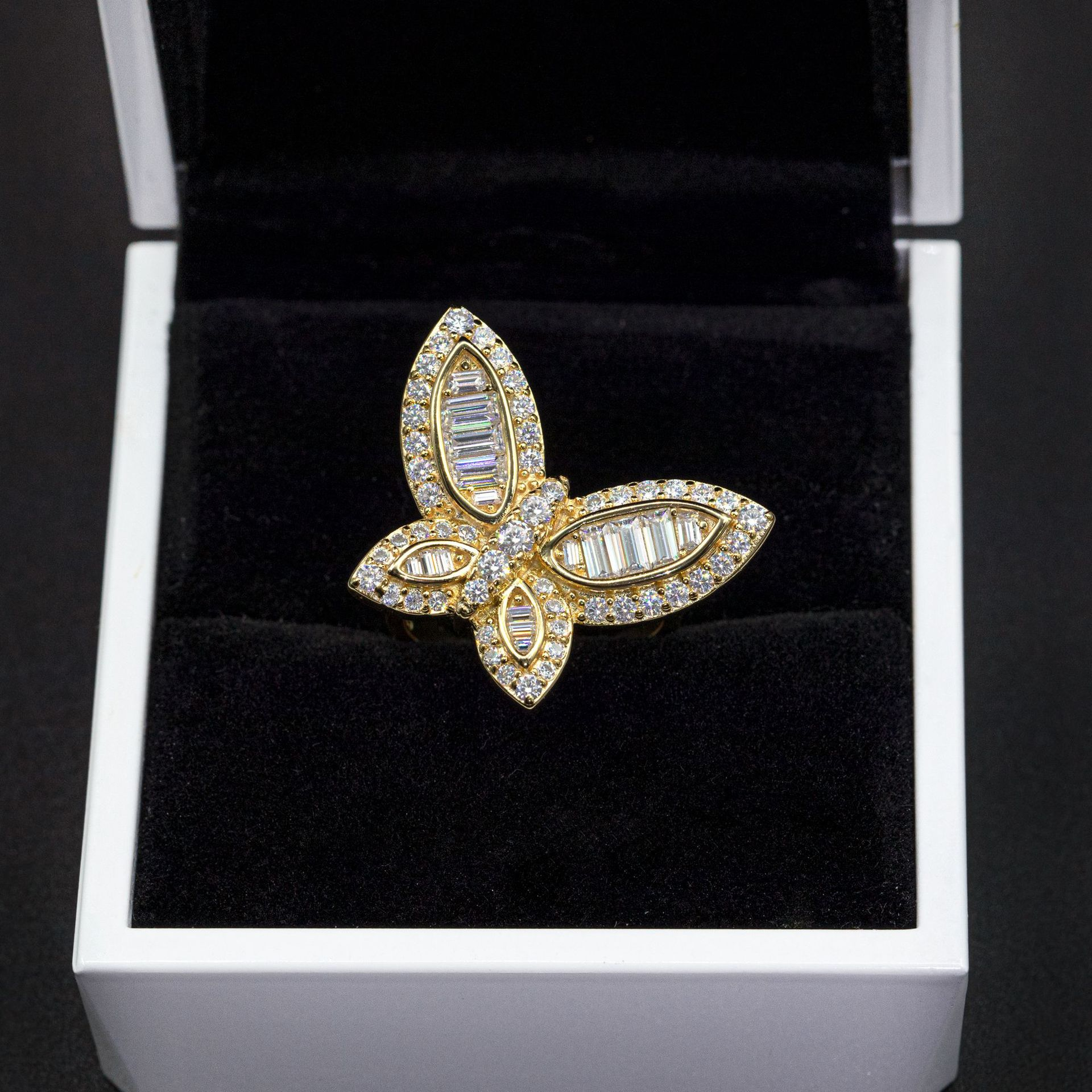 Bubble Letter Silver Moissanite VVS Baguette Butterfly for Women Hip Hop Jewelry