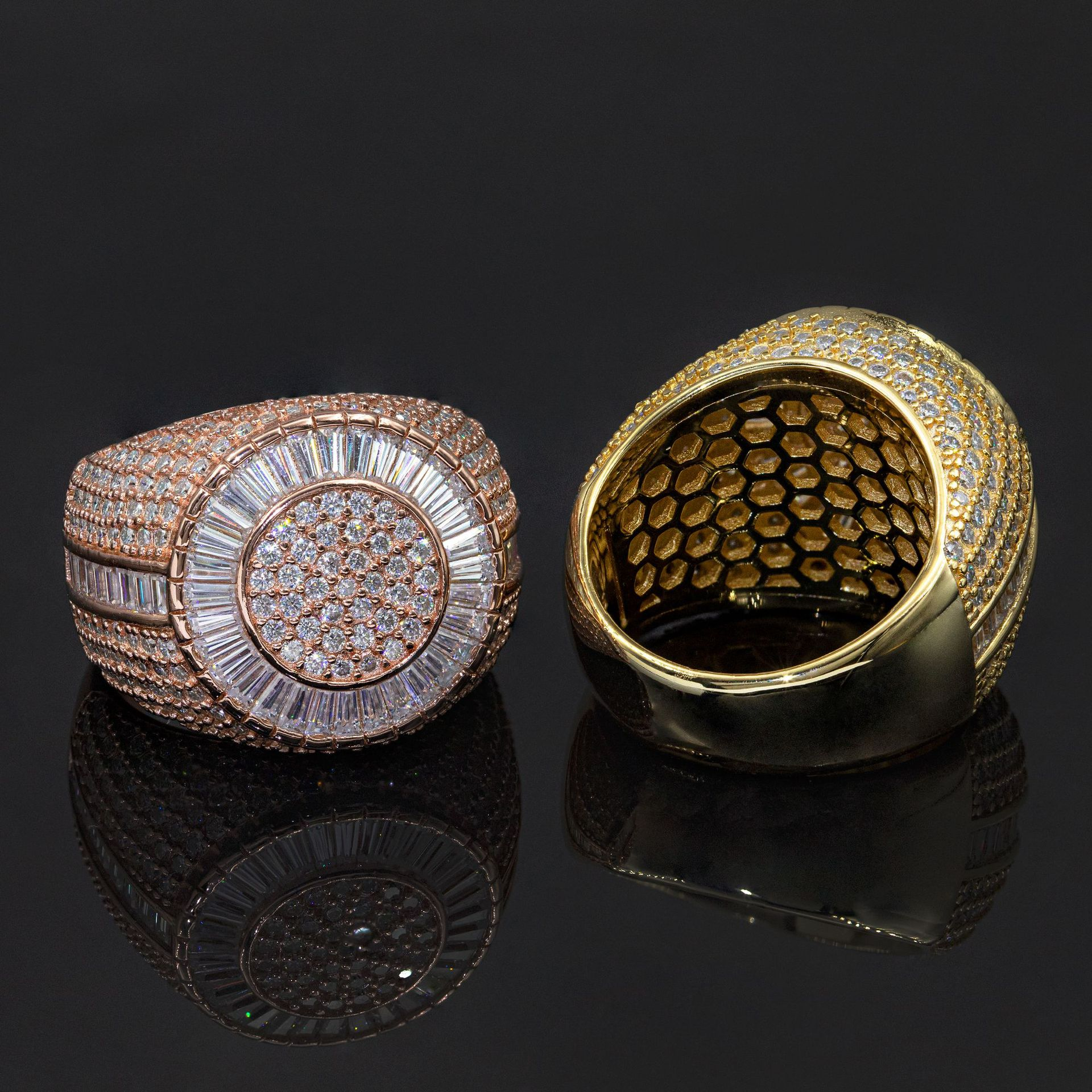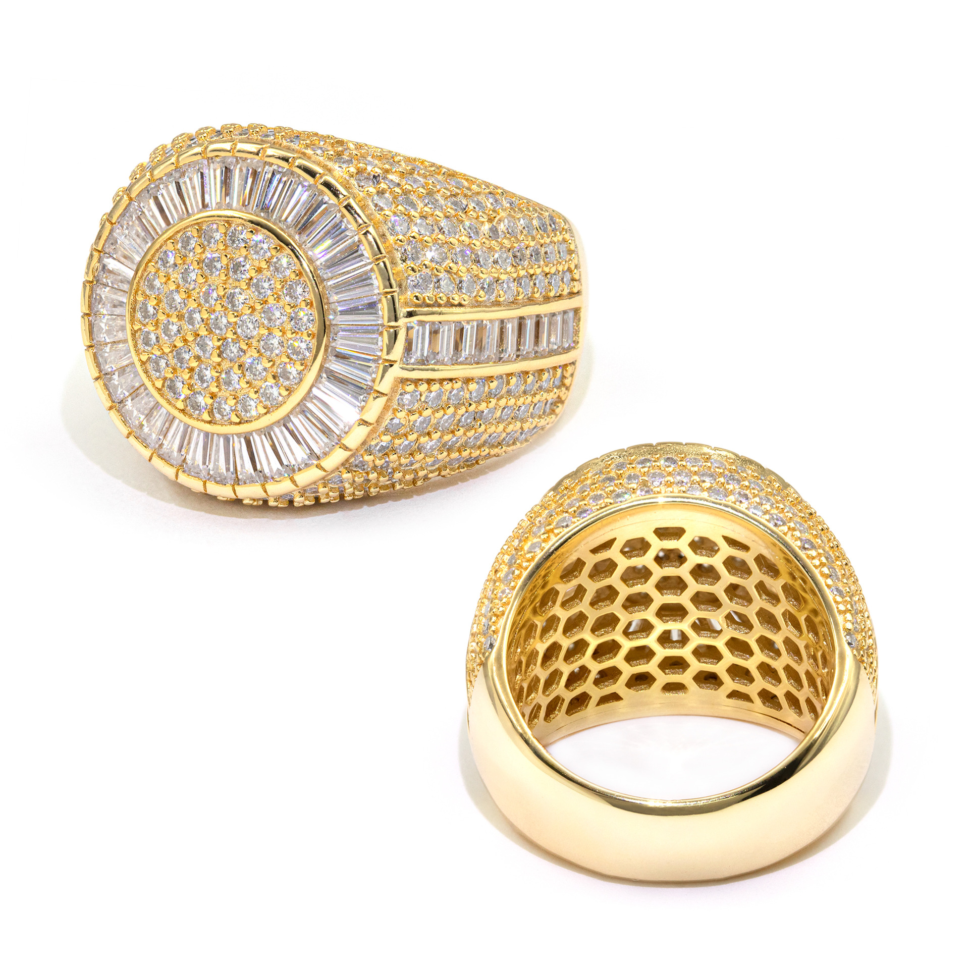 Bubble Letter Silver Moissanite VVS Baguette Circle Ring for Men Hip Hop Jewelry
