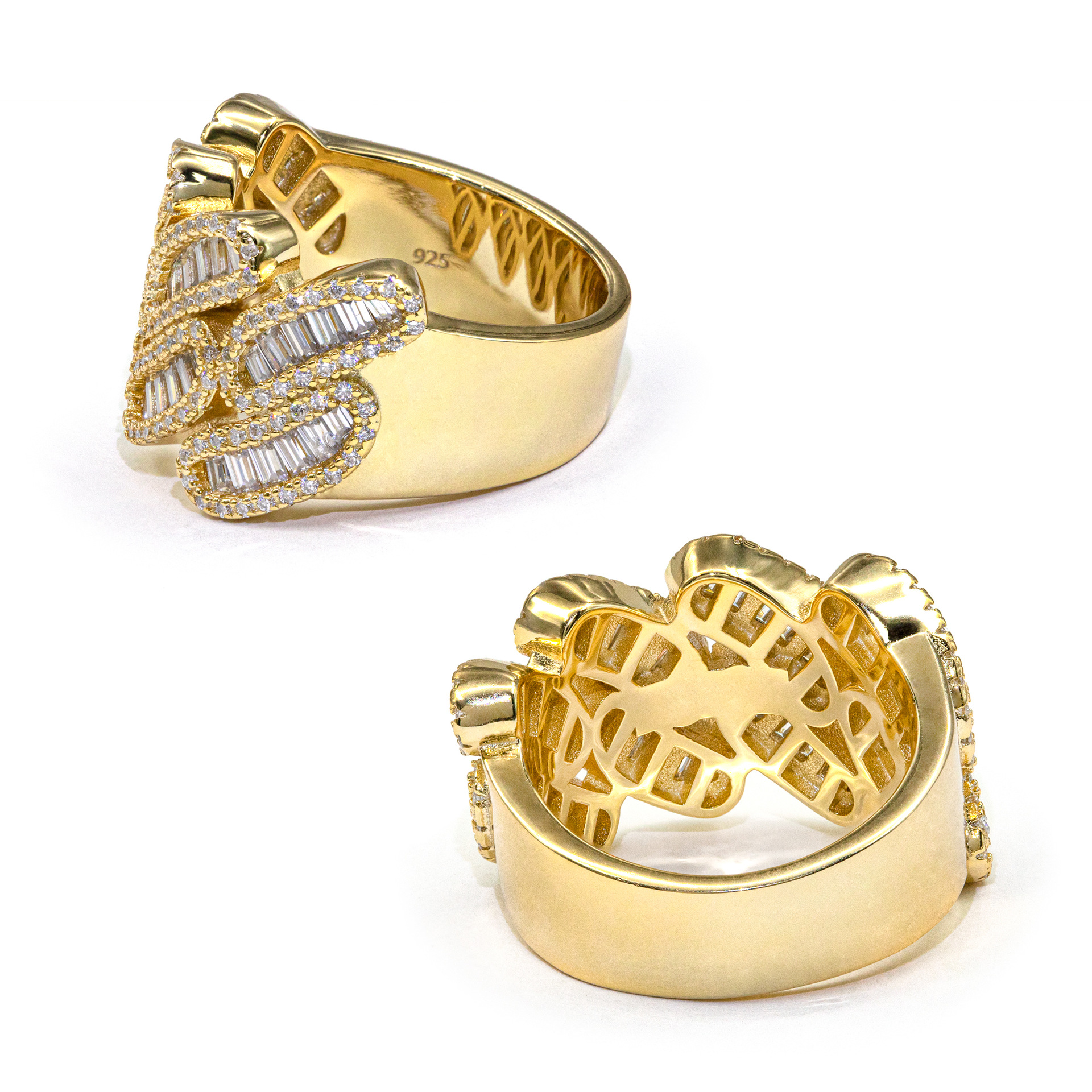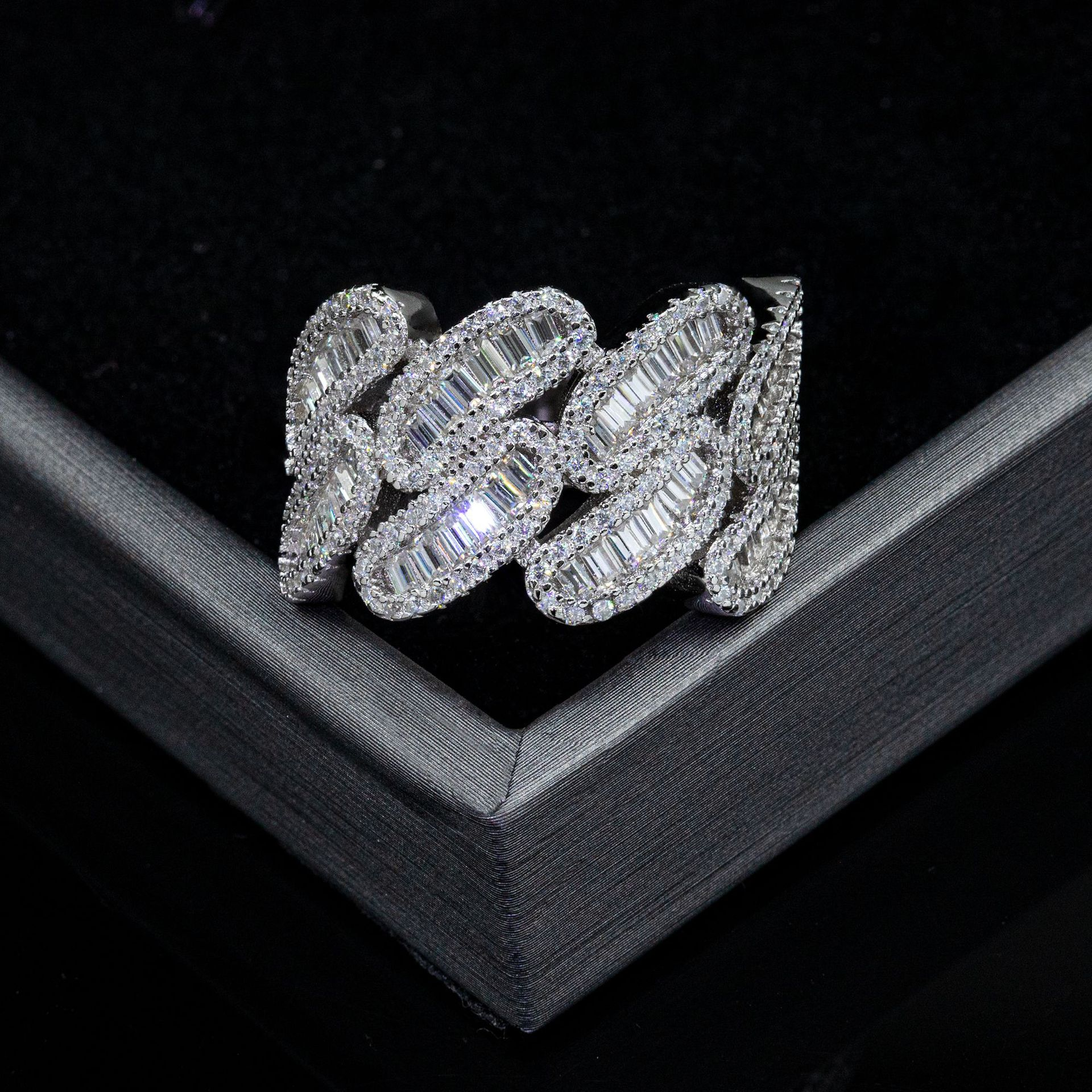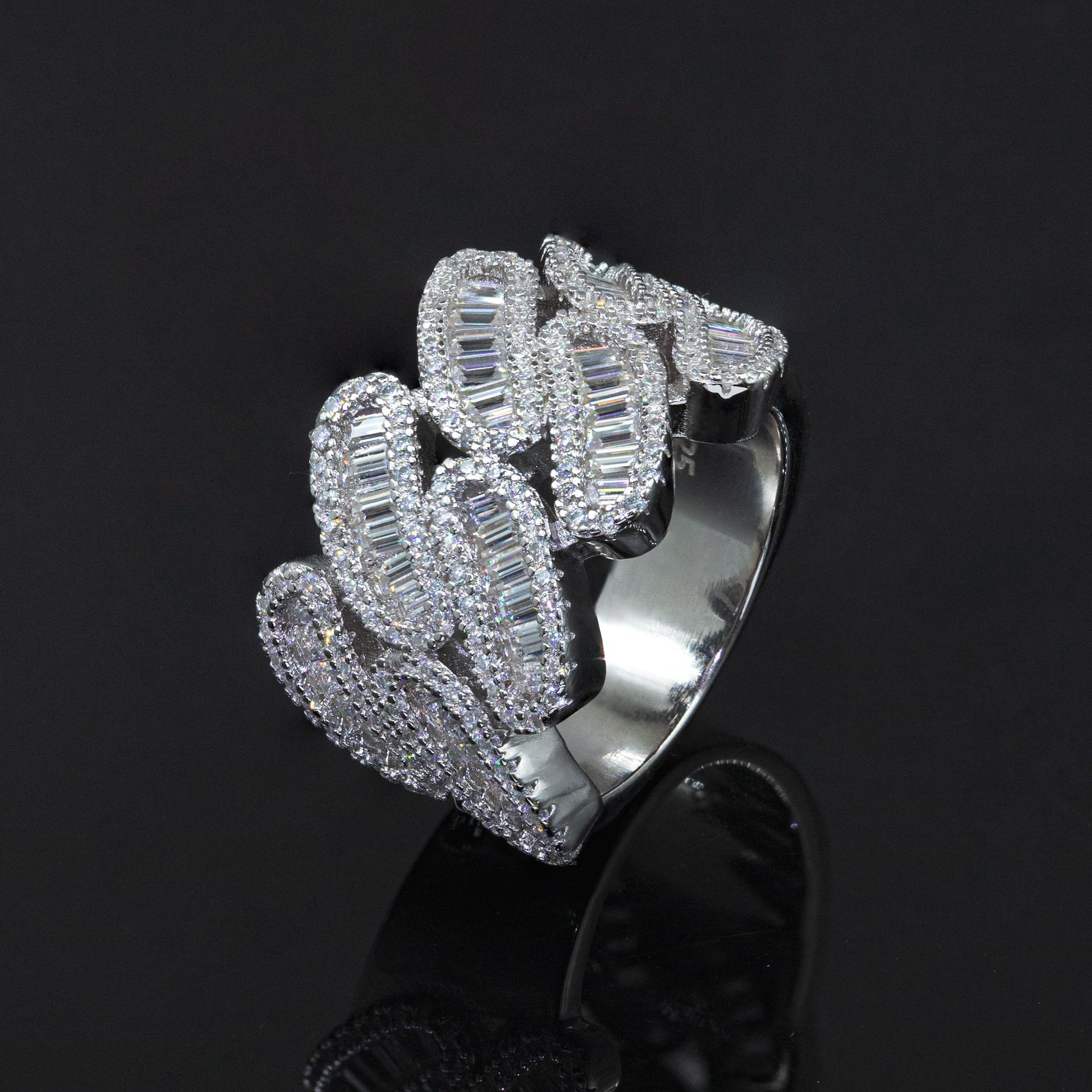 Bubble Letter Silver Moissanite VVS Baguette Cuban Ring for Men Hip Hop Jewelry