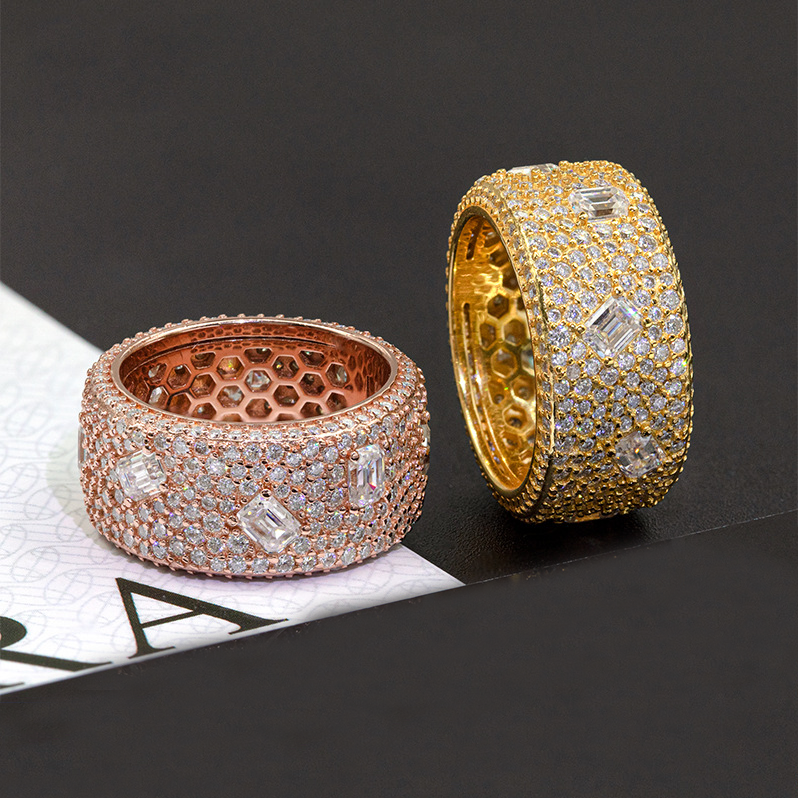 Bubble Letter Silver Moissanite VVS Baguette Dot Circle Ring for Men Hip Hop Jewelry
