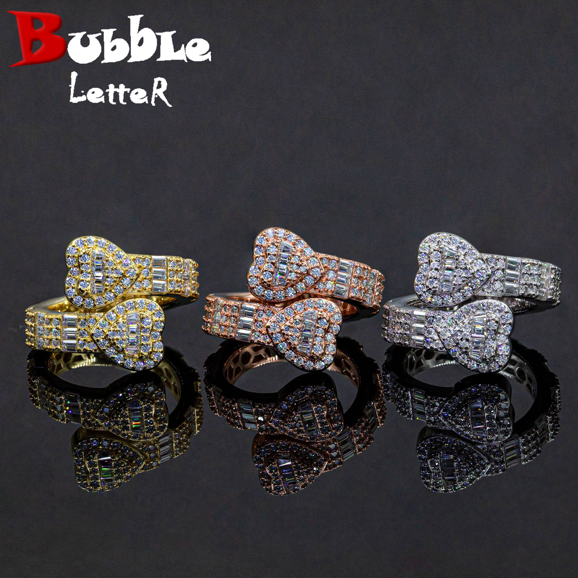 Bubble Letter Silver Moissanite VVS Baguette Heart Ring for Men Hip Hop Jewelry