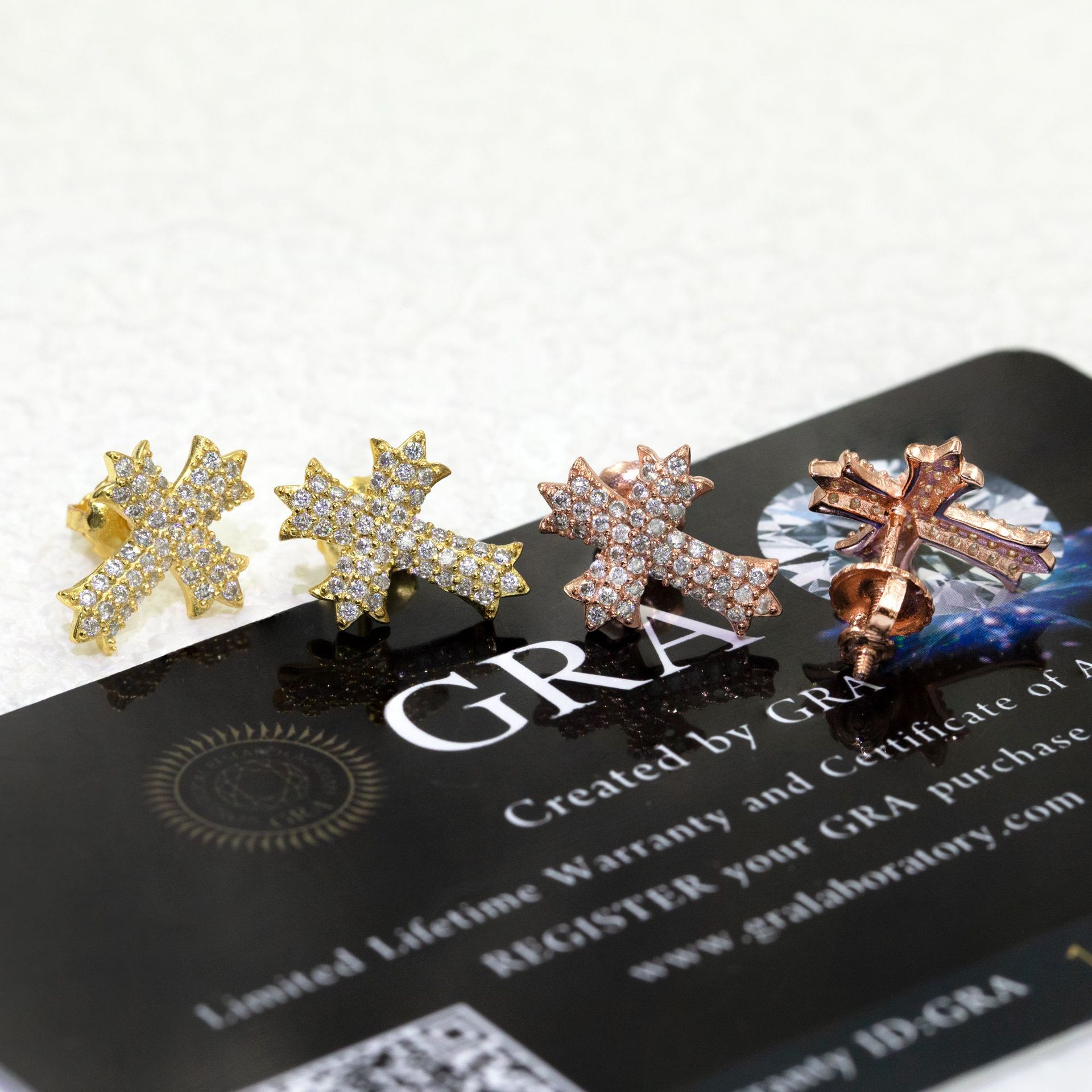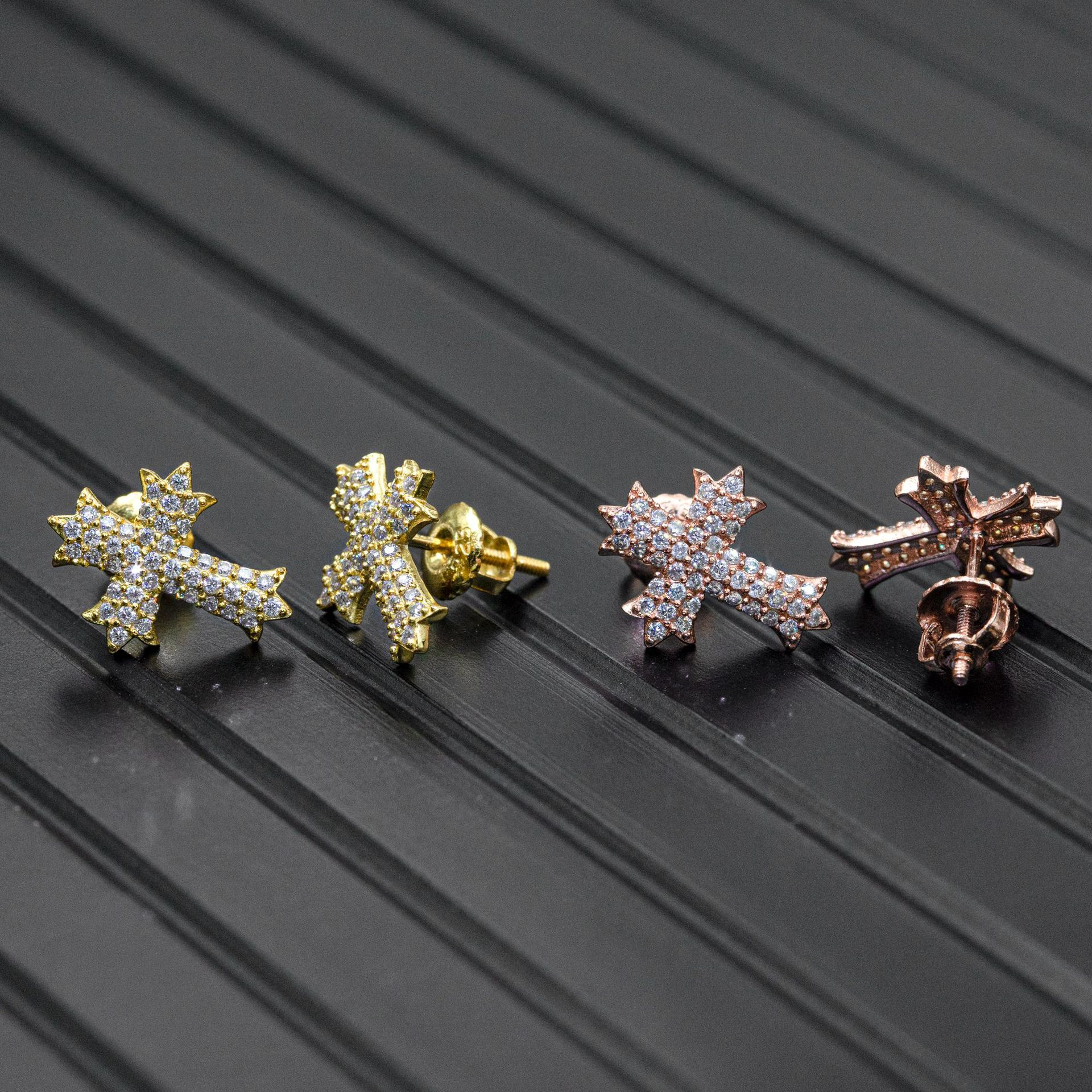 Bubble Letter Silver Moissanite VVS Chrome Cross Stud Earring for Men Hip Hop Jewelry