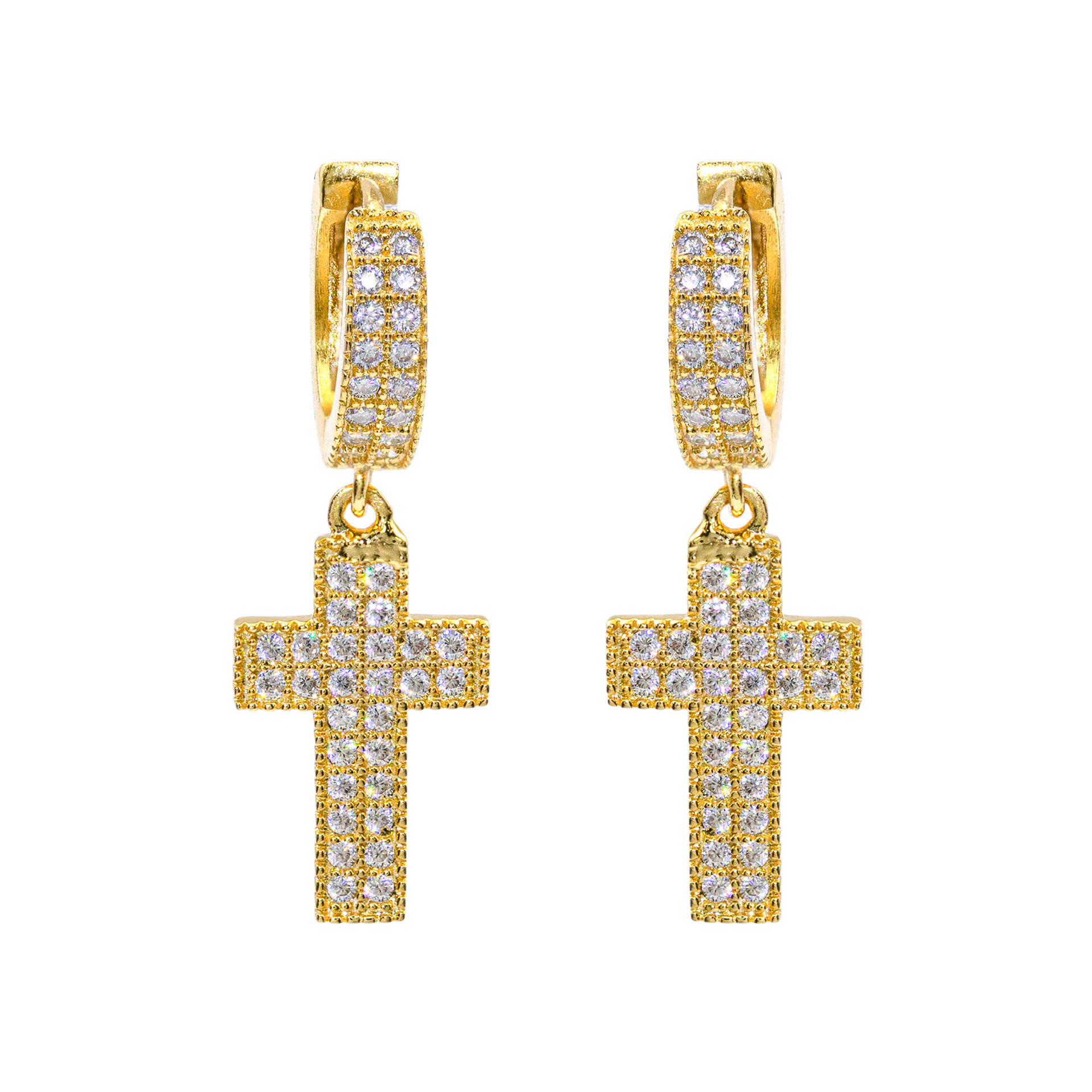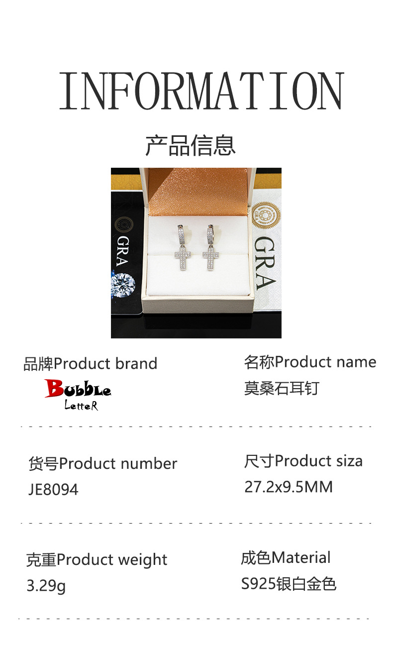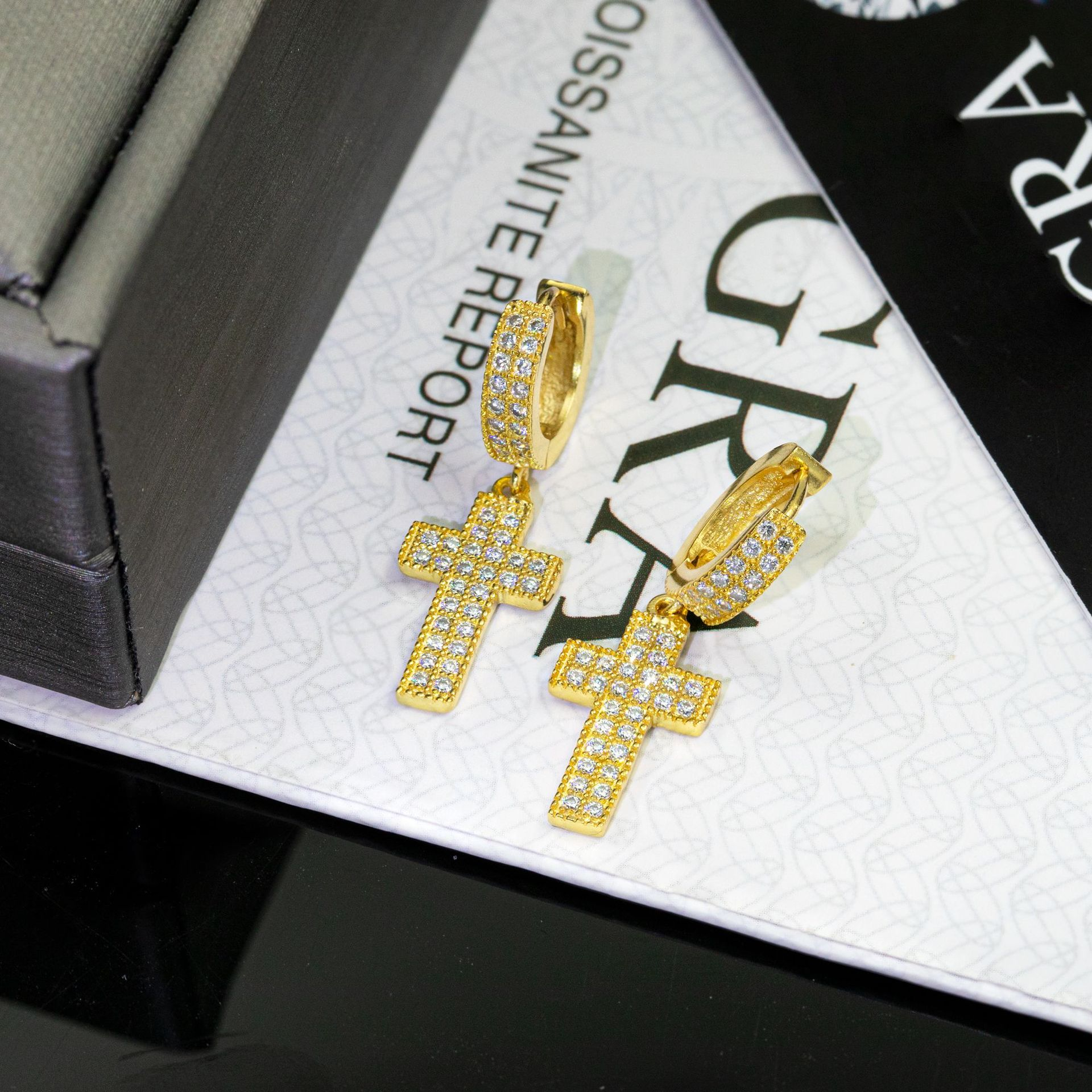 Bubble Letter Silver Moissanite VVS Cross Eardrop Earring for Men Hip Hop Jewelry