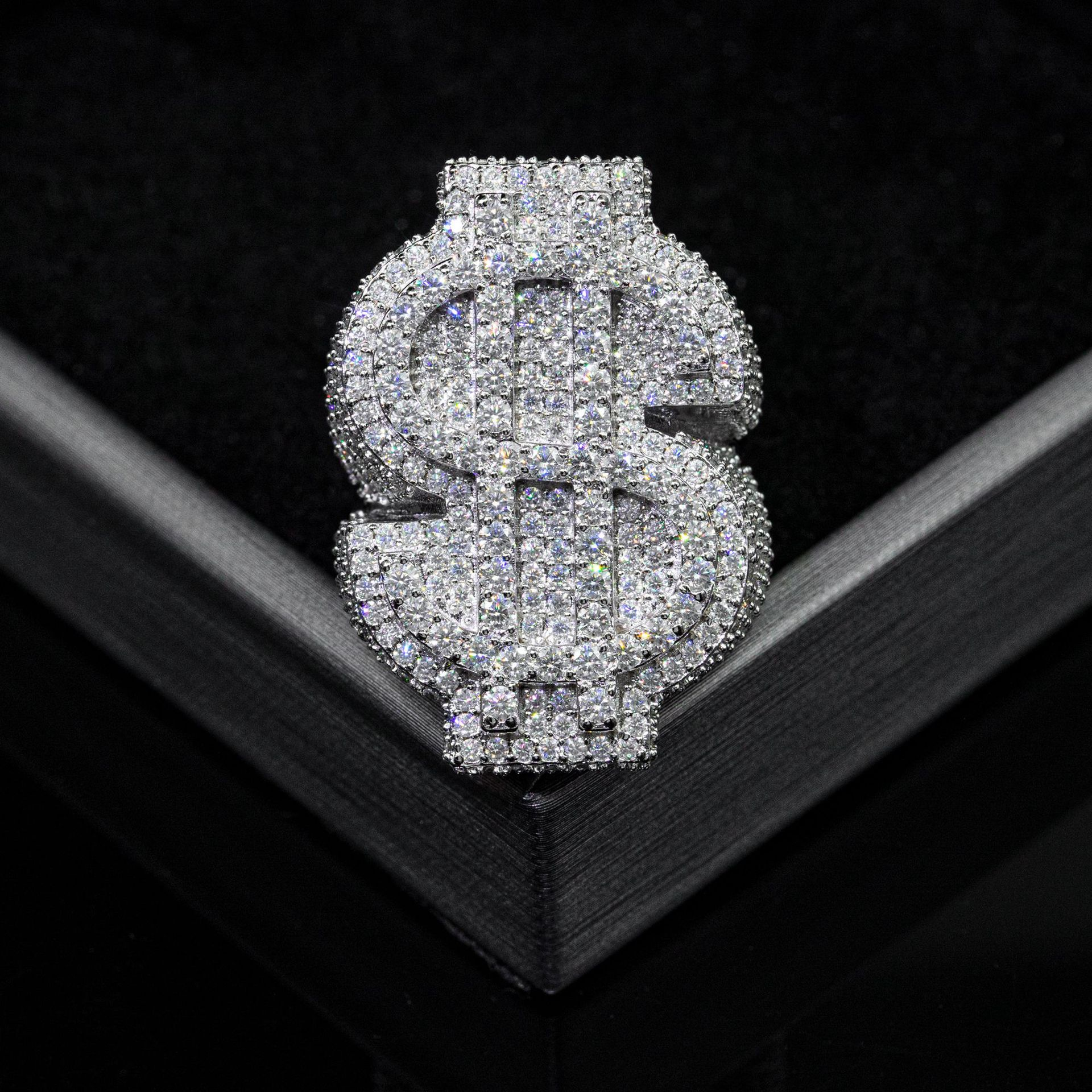Bubble Letter Silver Moissanite VVS Dollar Sign for Men Hip Hop Jewelry