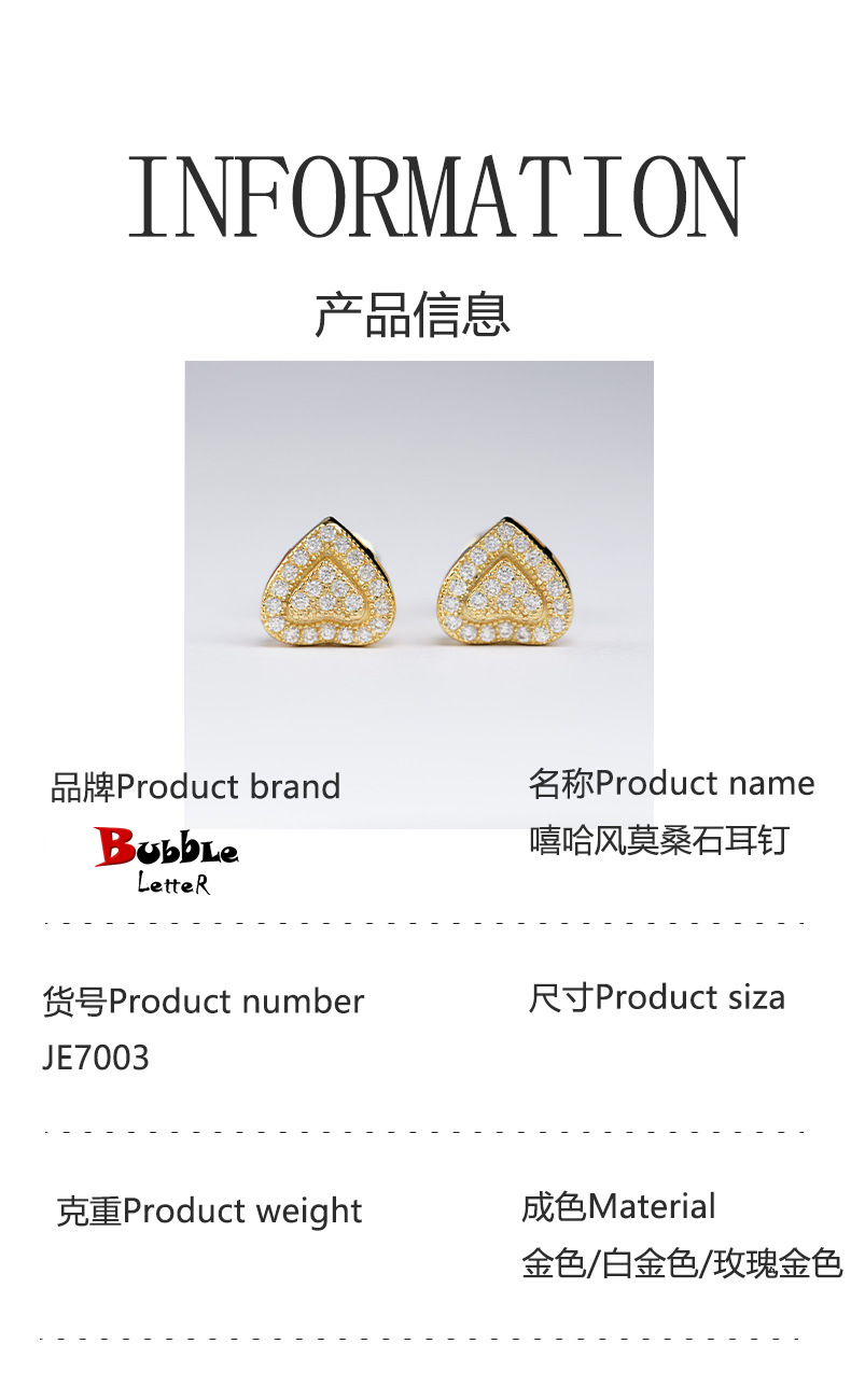 Bubble Letter Silver Moissanite VVS Double Heart Stud Earring for Men Hip Hop Jewelry