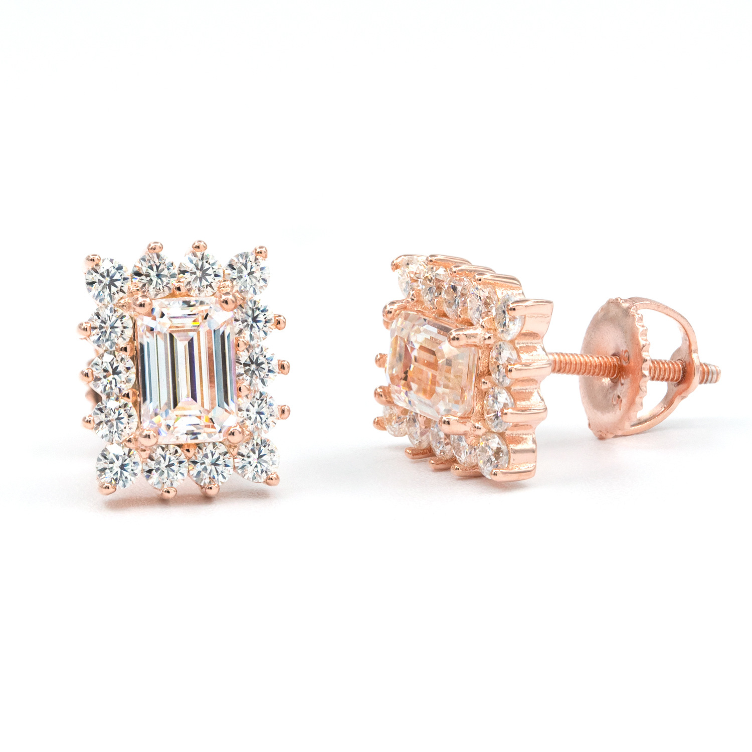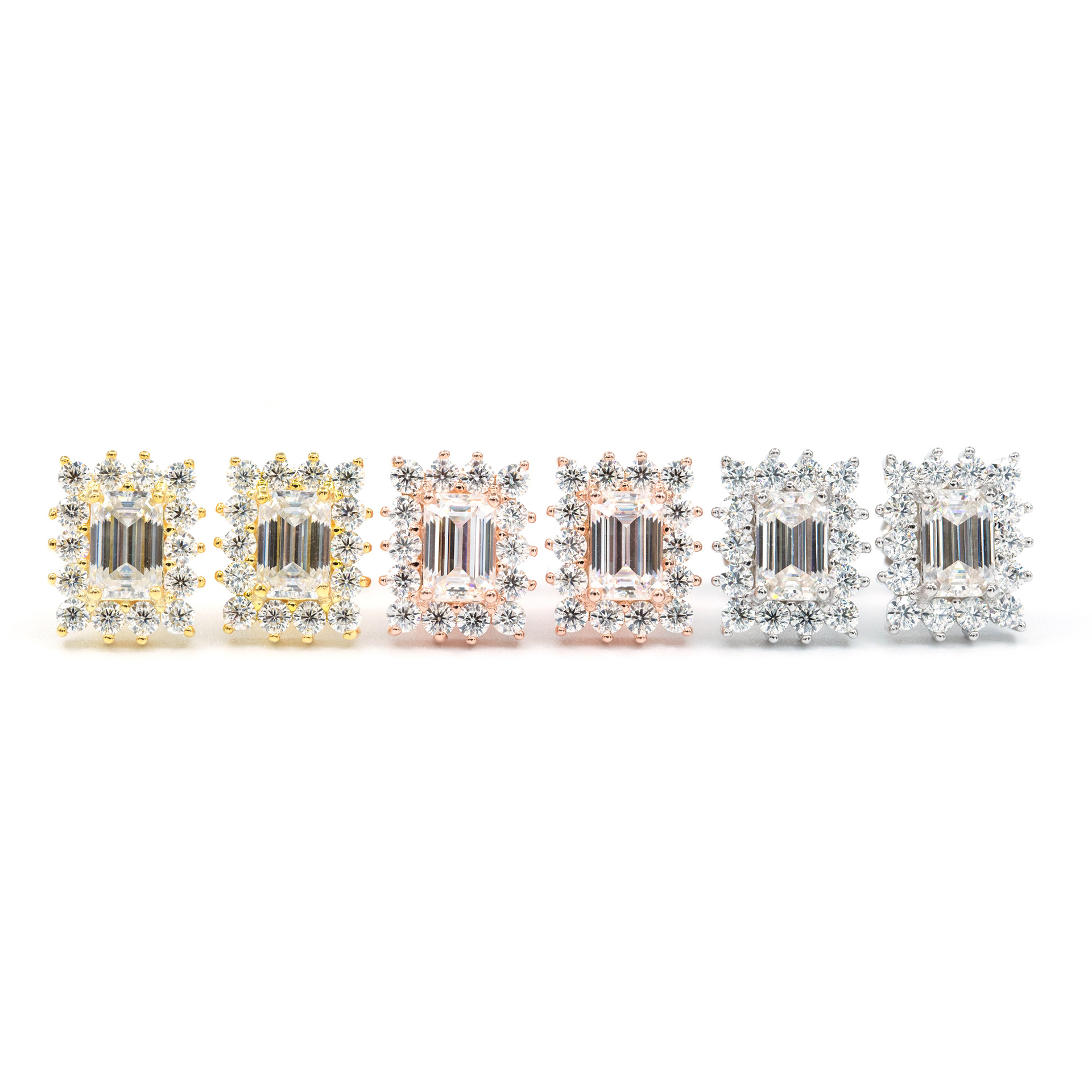 Bubble Letter Silver Moissanite VVS Edge Baguette Stud Earring for Men Hip Hop Jewelry