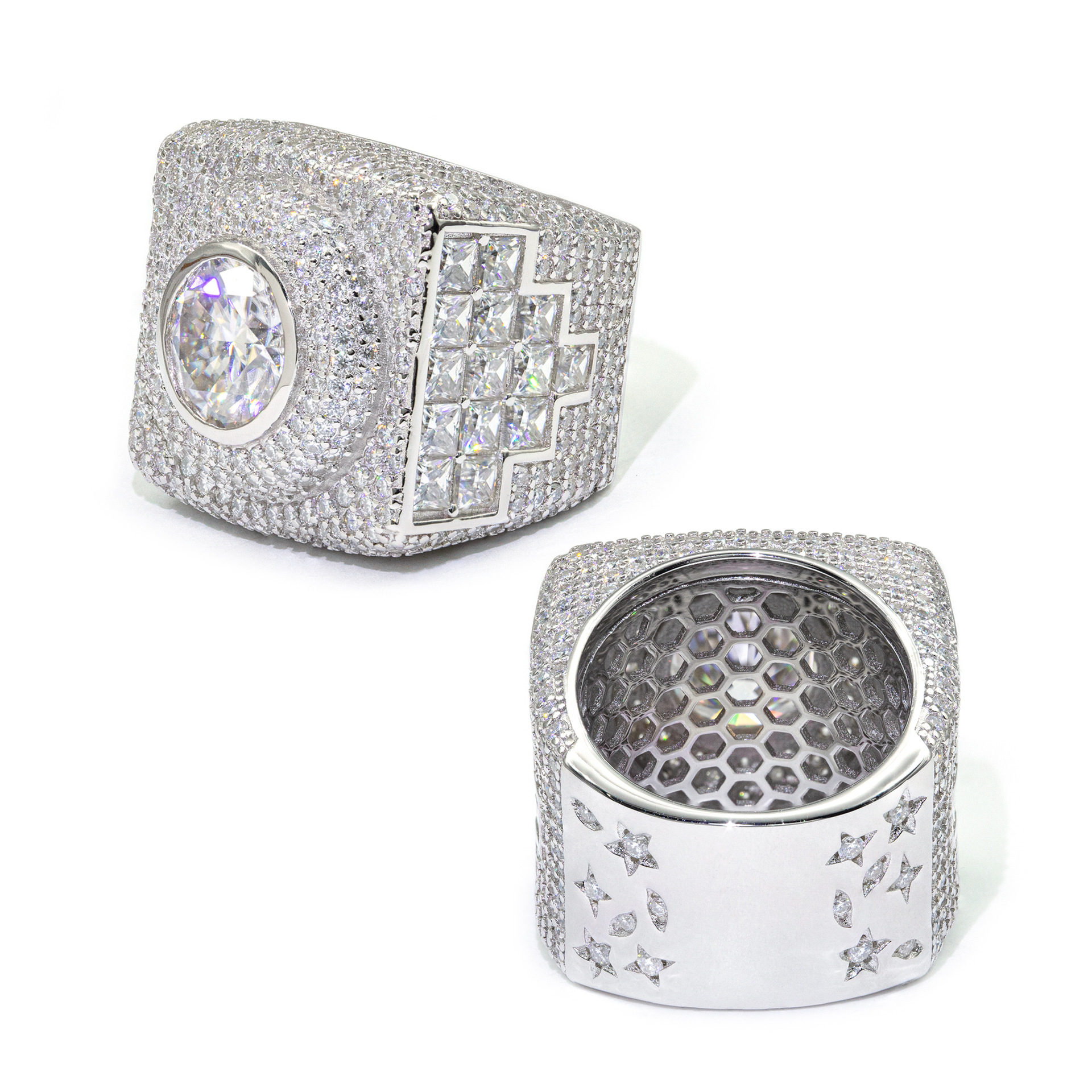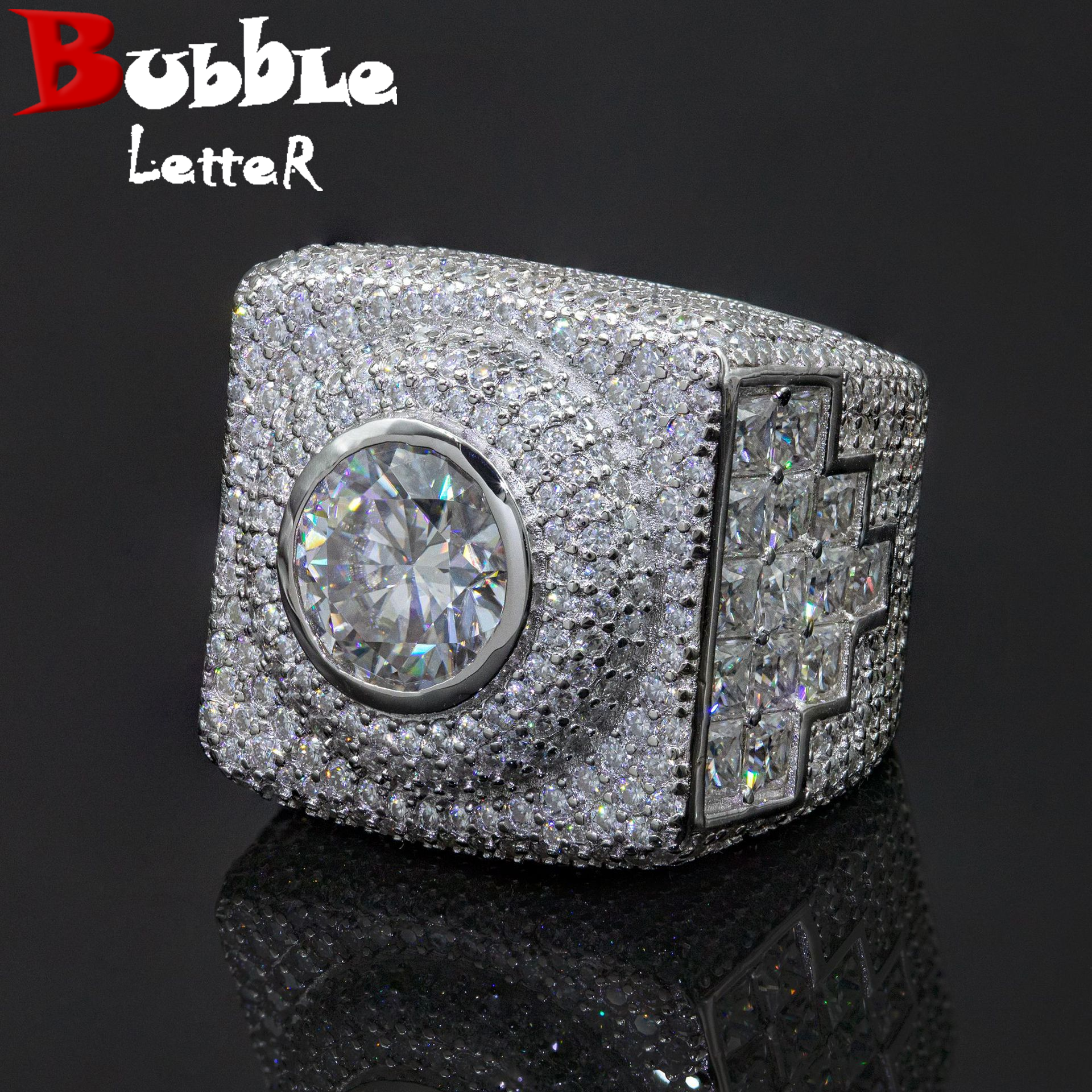 Bubble Letter Silver Moissanite VVS Eye Ring for Men Hip Hop Jewelry