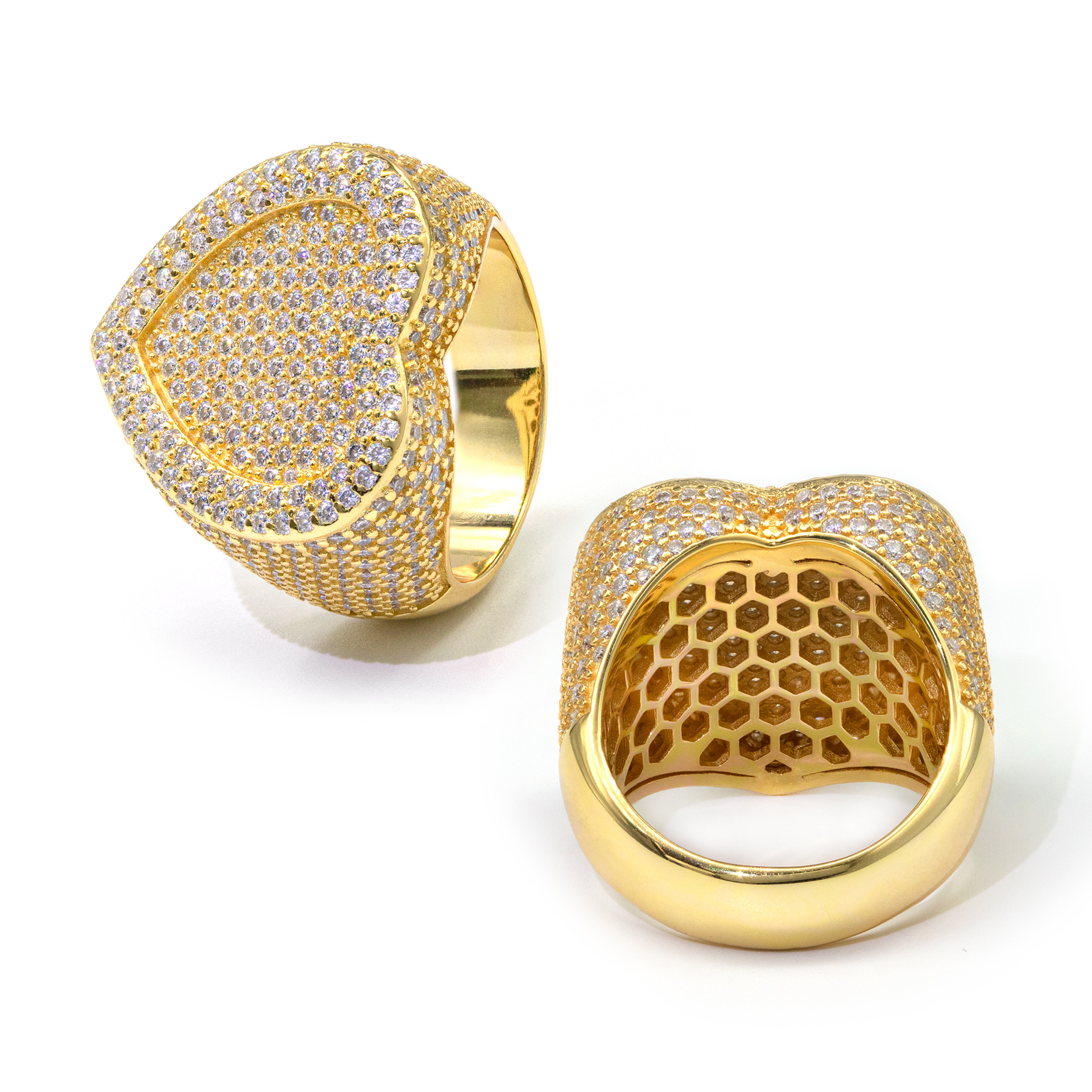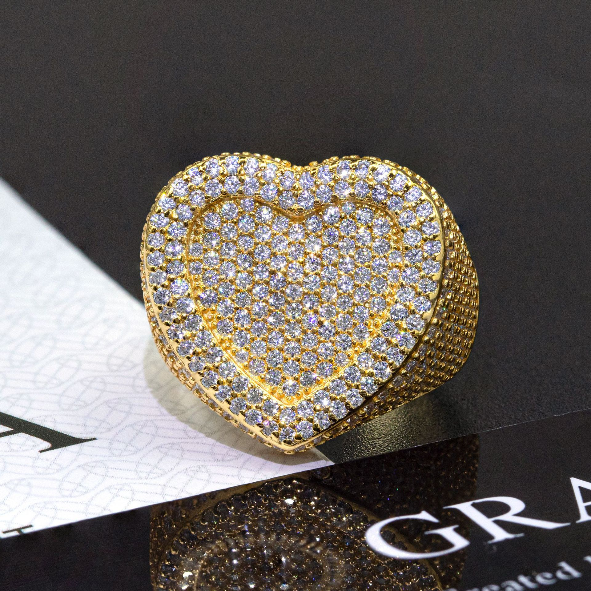 Bubble Letter Silver Moissanite VVS Heart Ring for Women Hip Hop Jewelry