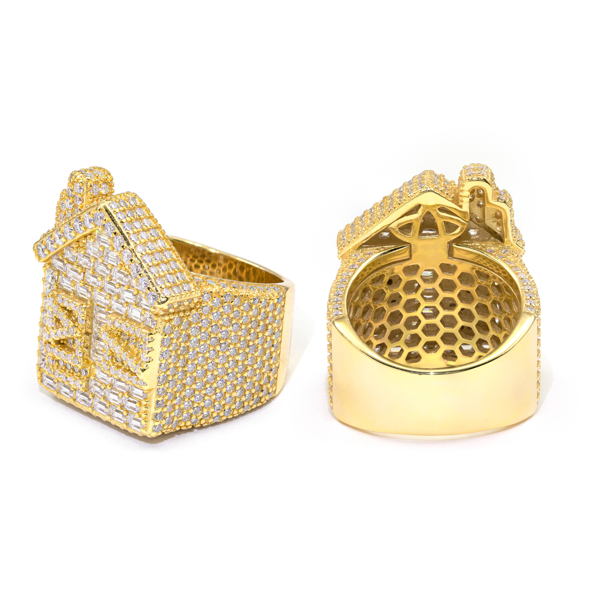 Bubble Letter Silver Moissanite VVS House Ring for Men Hip Hop Jewelry