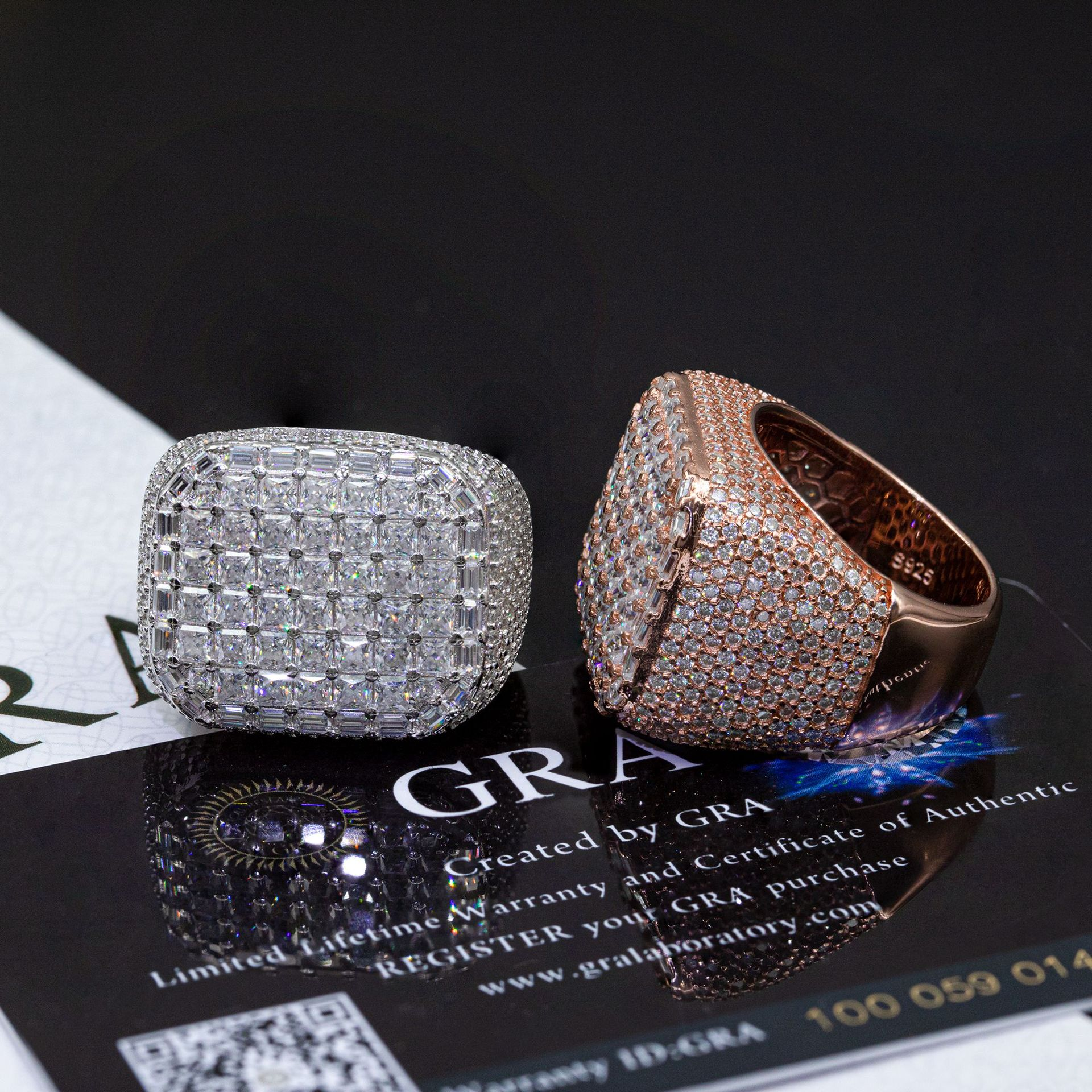 Bubble Letter Silver Moissanite VVS Rectangle Baguette Ring for Men Hip Hop Jewelry
