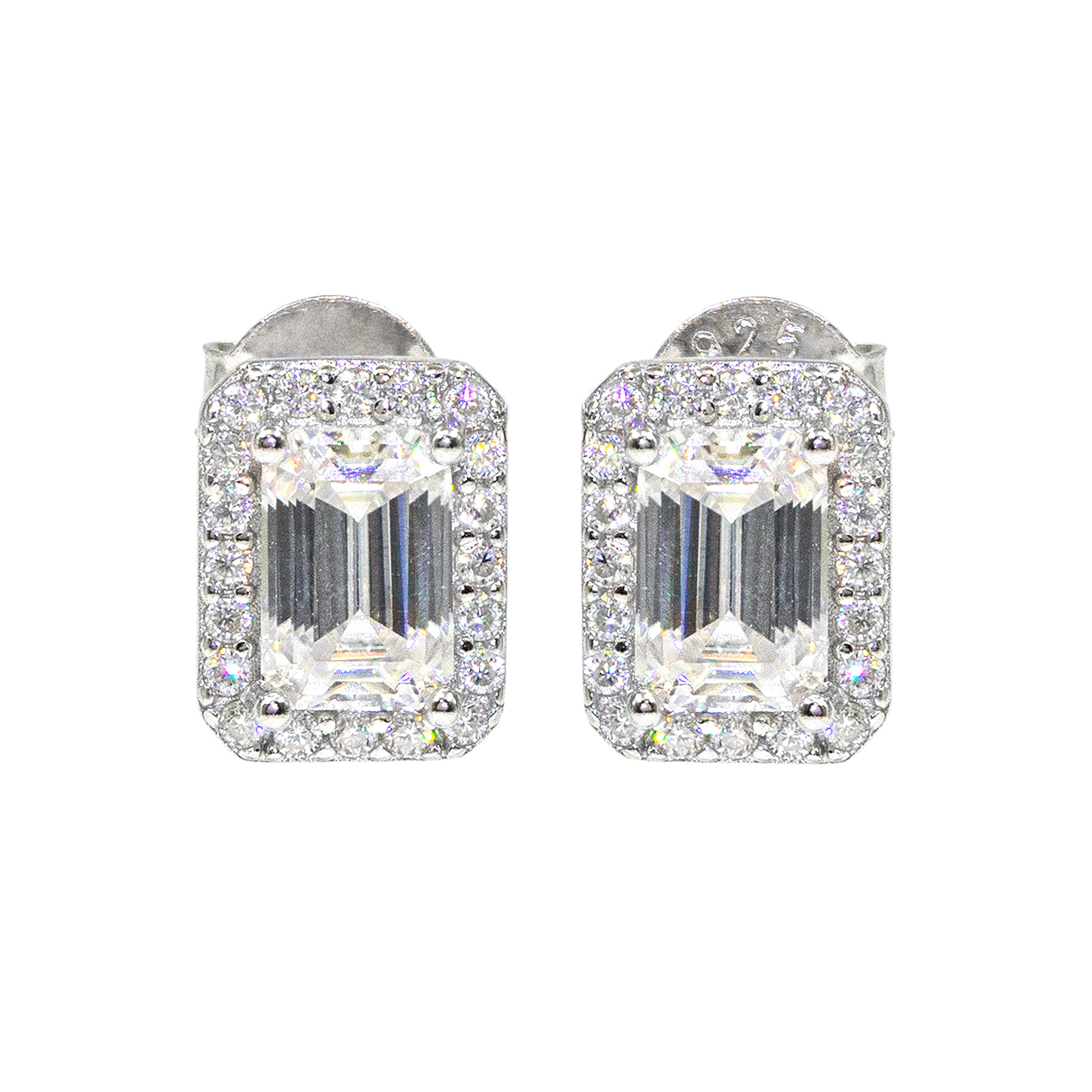 Bubble Letter Silver Moissanite VVS Rectangle Baguette Stud Earring for Men Hip Hop Jewelry
