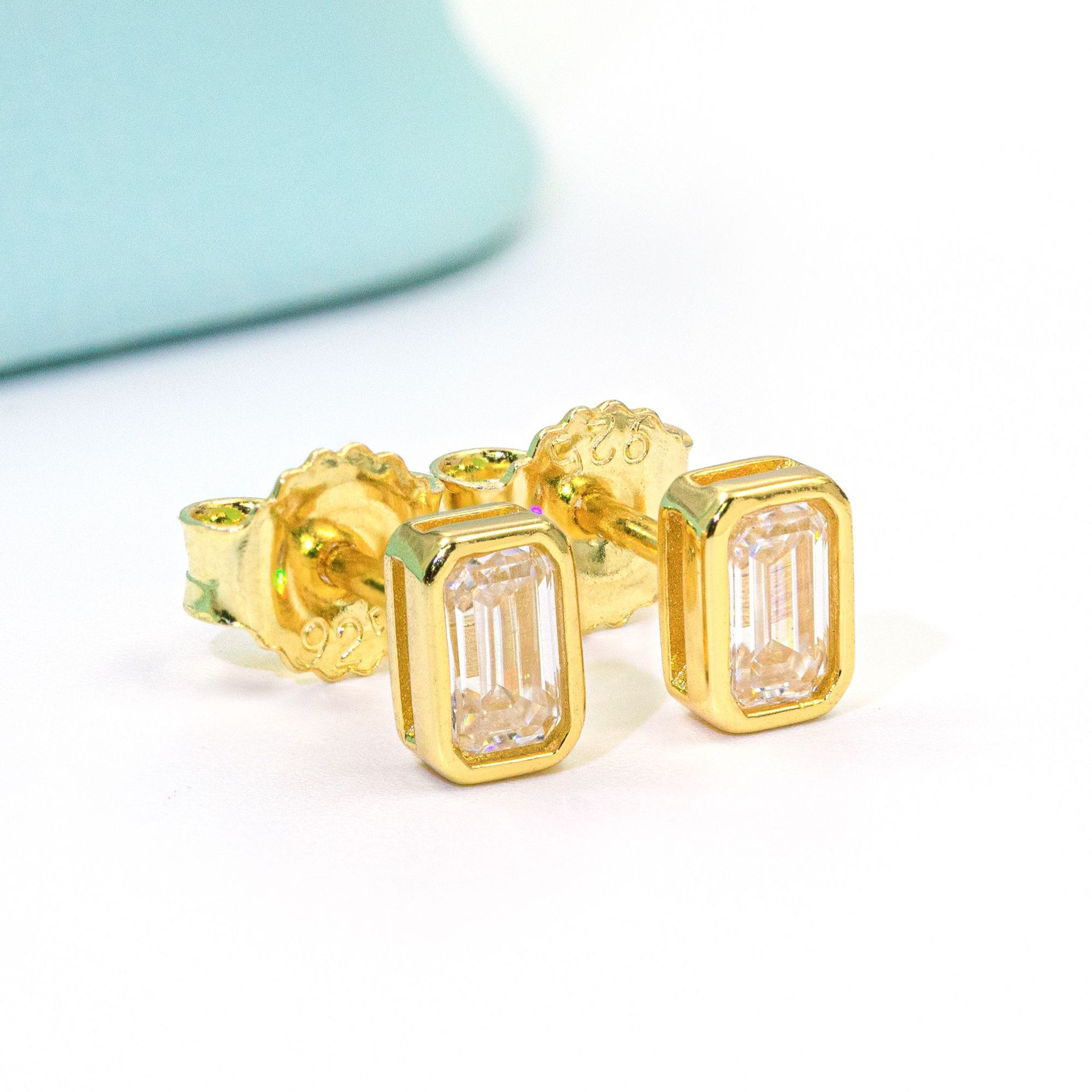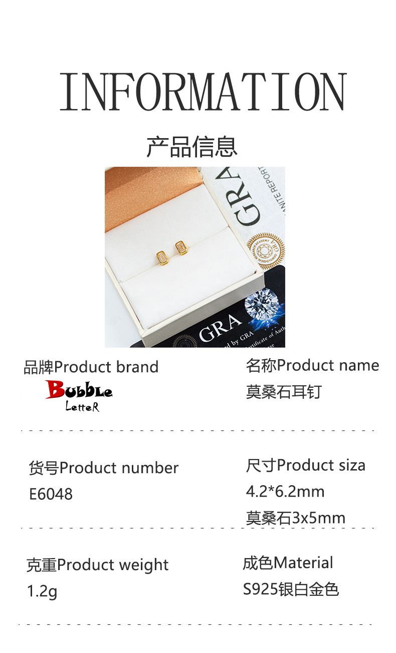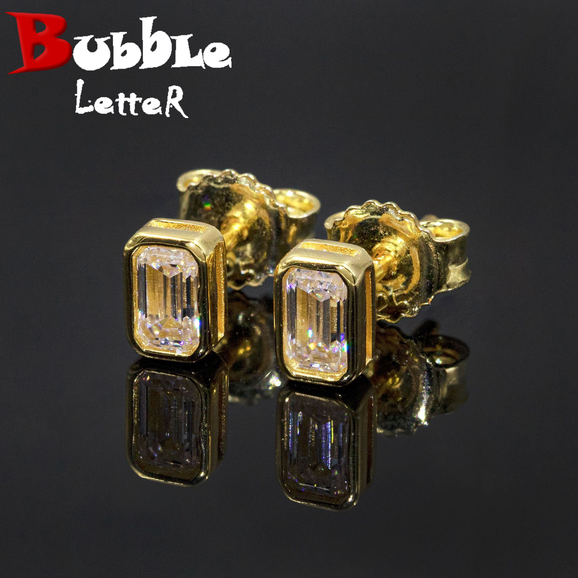 Bubble Letter Silver Moissanite VVS Rectangle Baguette Stud Earring for Men Hip Hop Jewelry