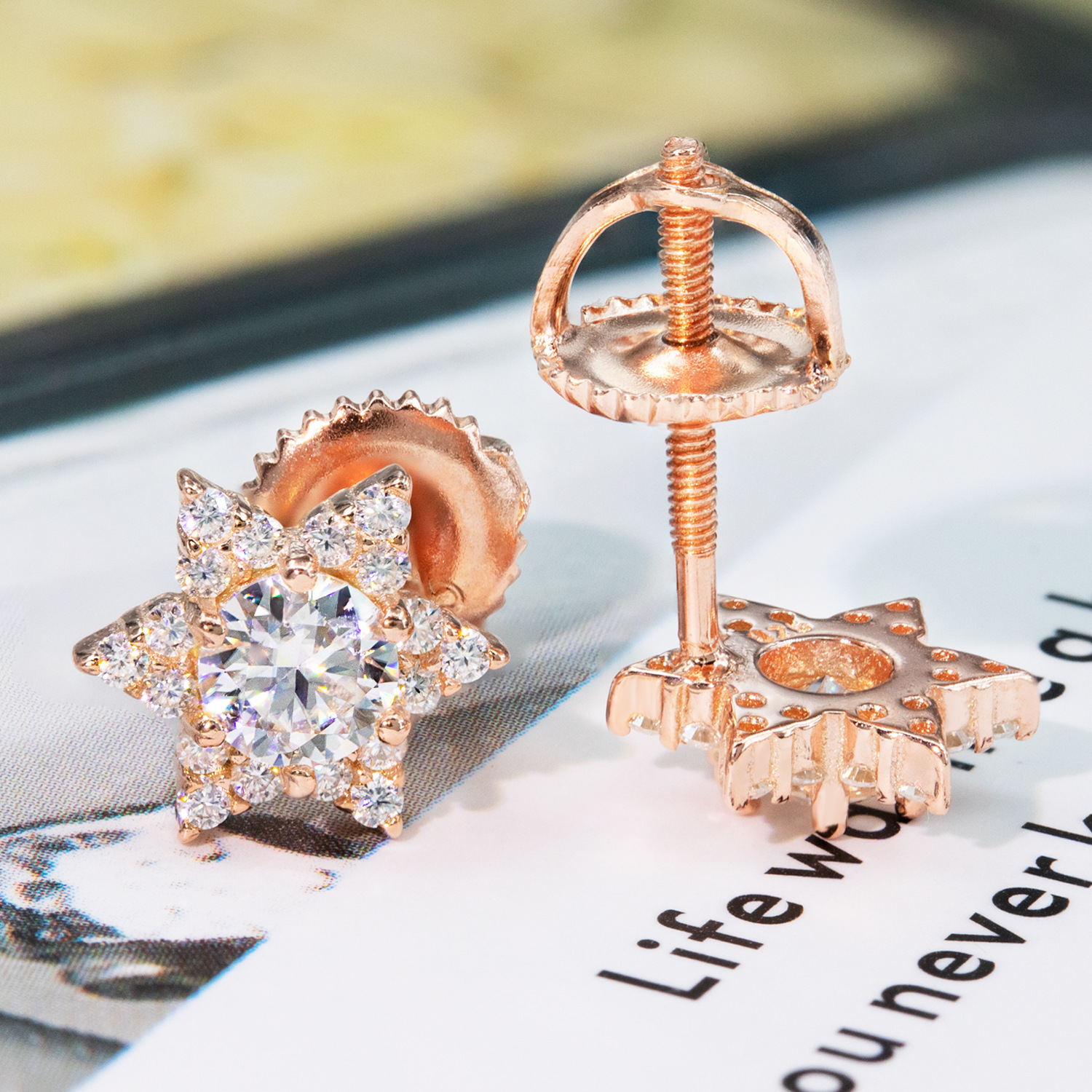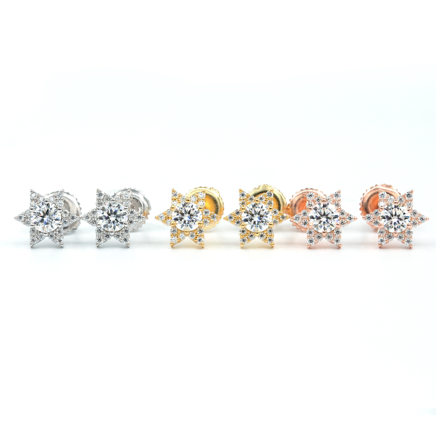 Bubble Letter Silver Moissanite VVS Sea Star Stud Earring for Men Hip Hop Jewelry