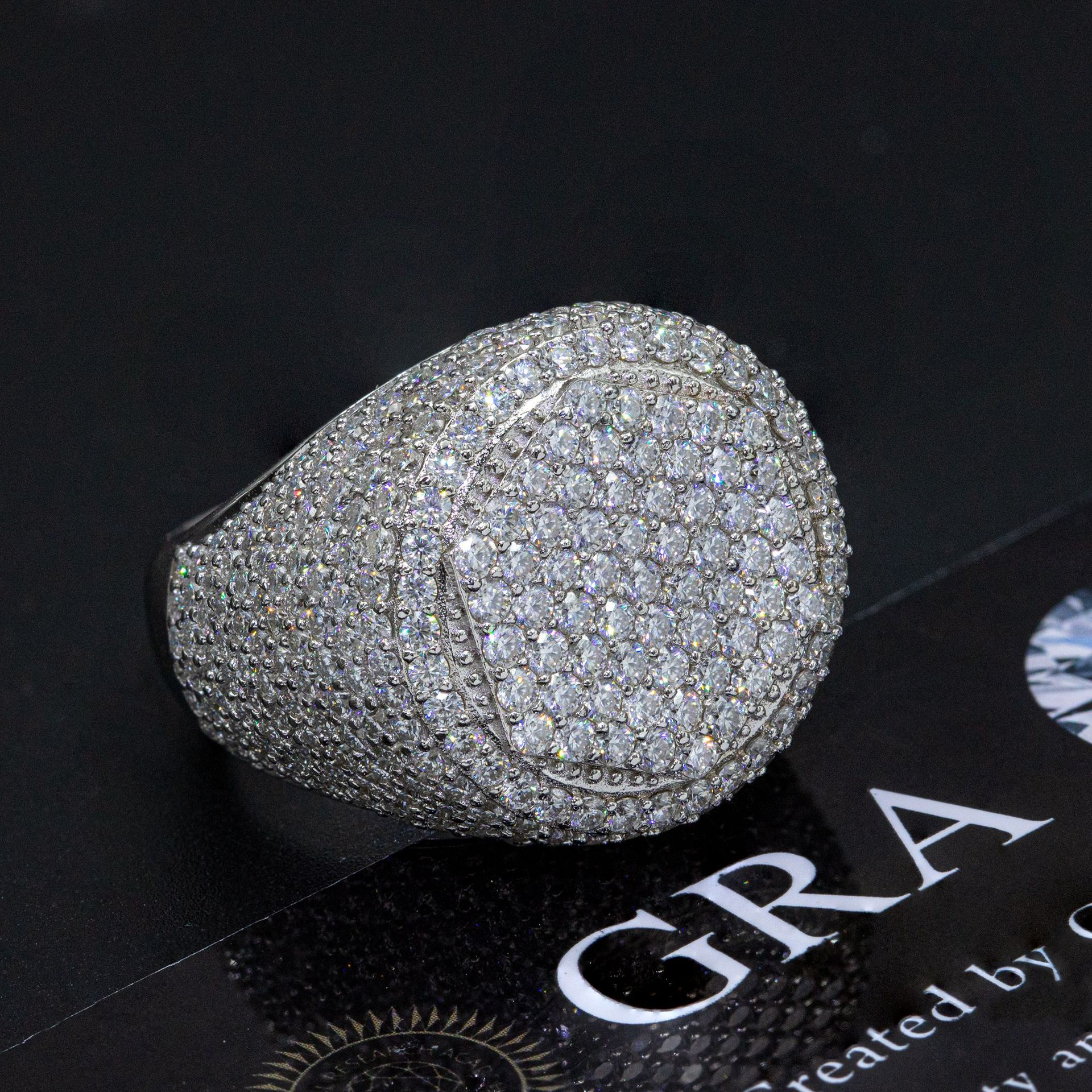 Bubble Letter Silver Moissanite VVS Seal Ring for Men Hip Hop Jewelry