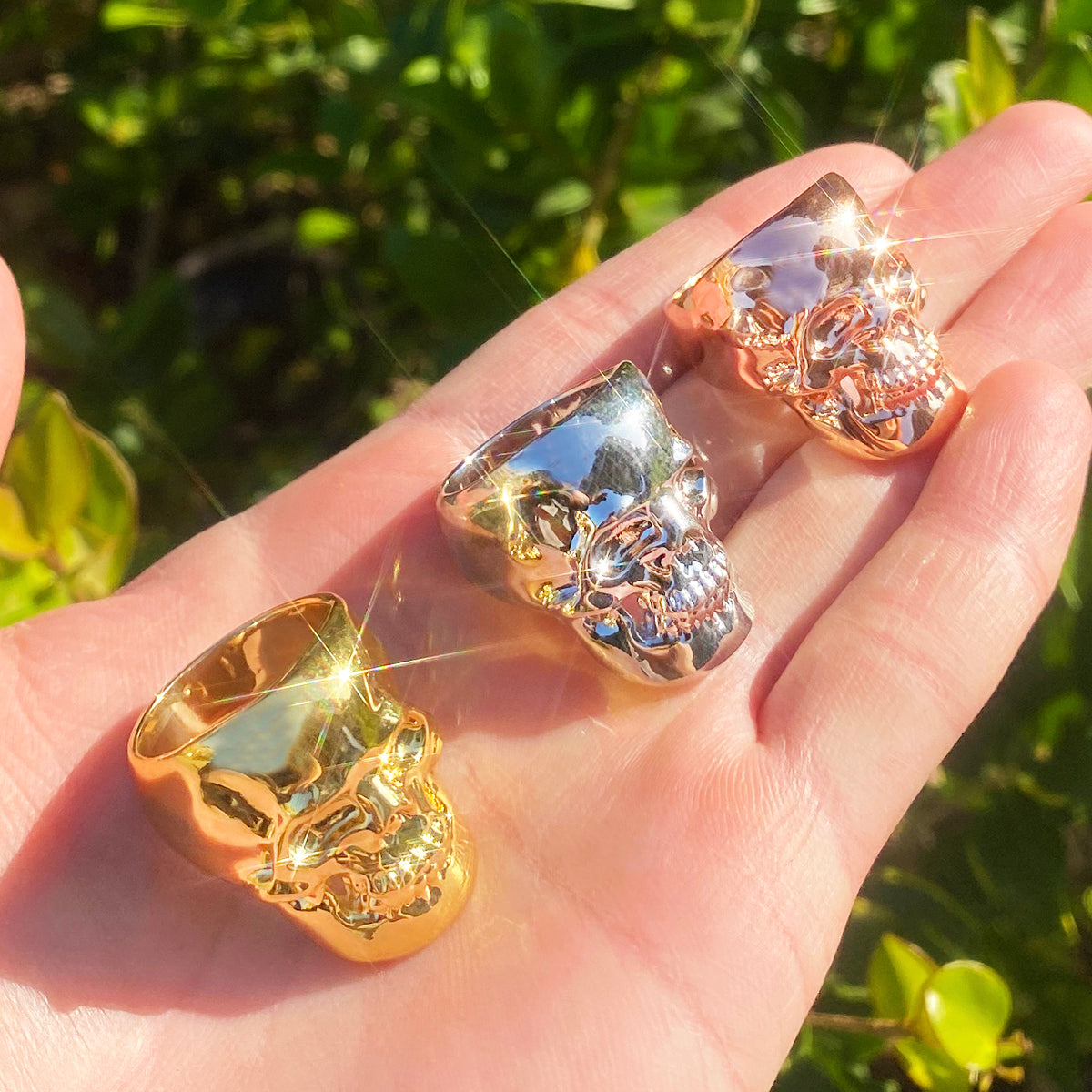 Bubble Letter Skull Ring for Men Real Copper Gold Plated Hip Hop Jewelry