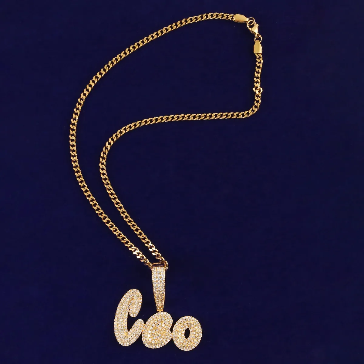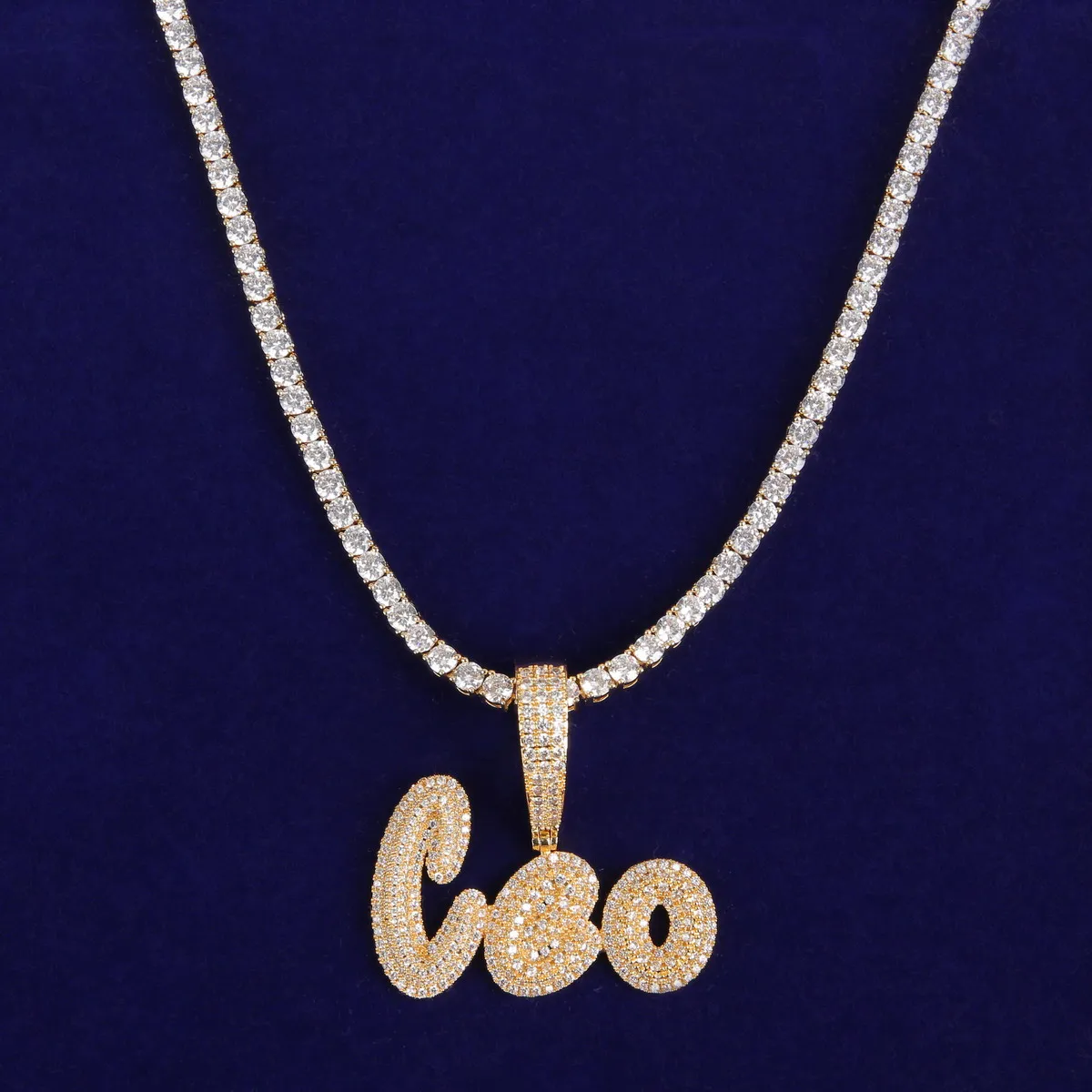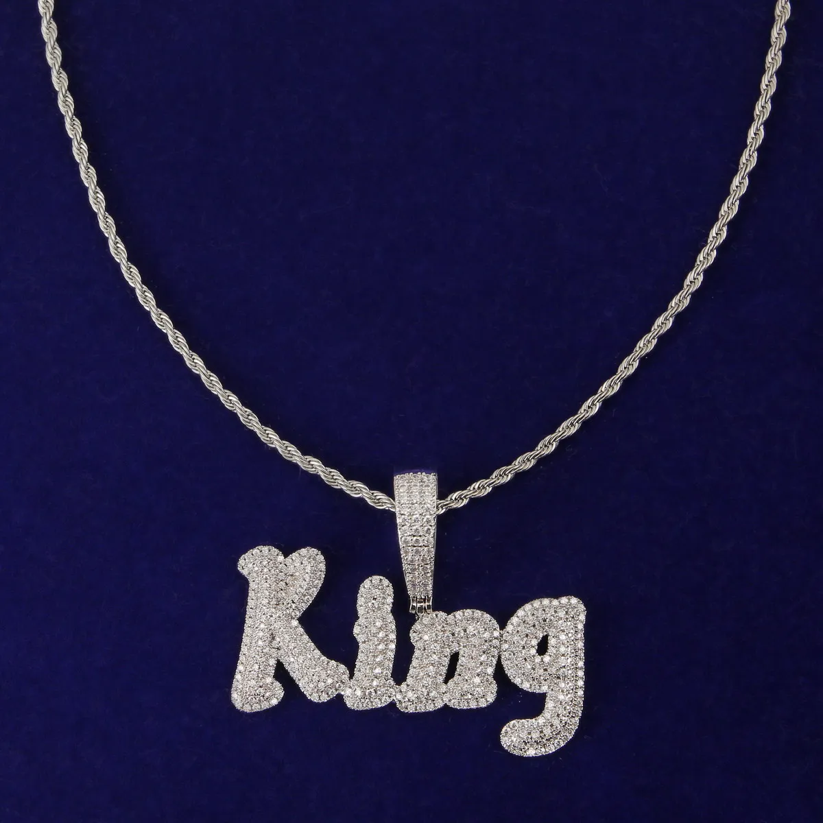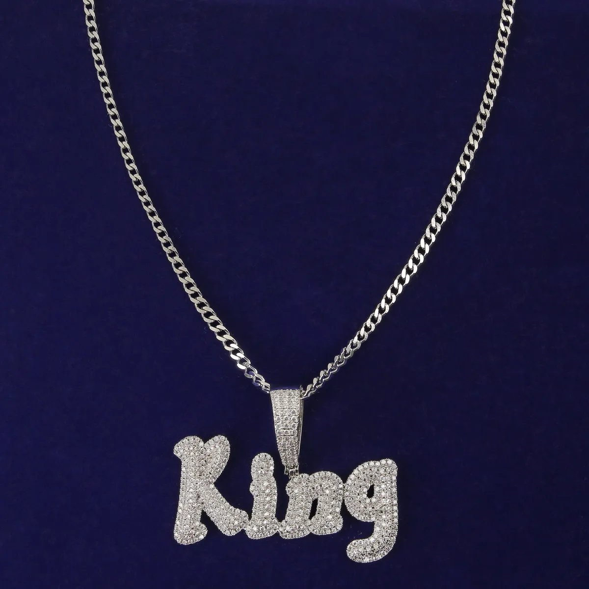 Custom Name Cursive Letters Pendants Necklaces Men's Zircon Hip Hop Jewelry