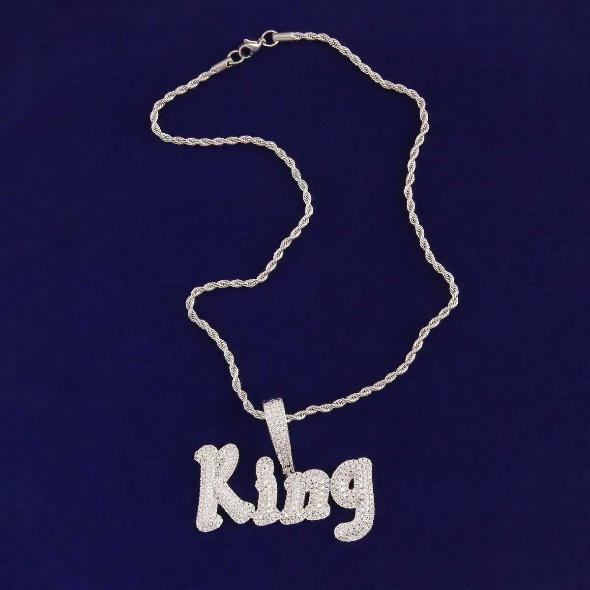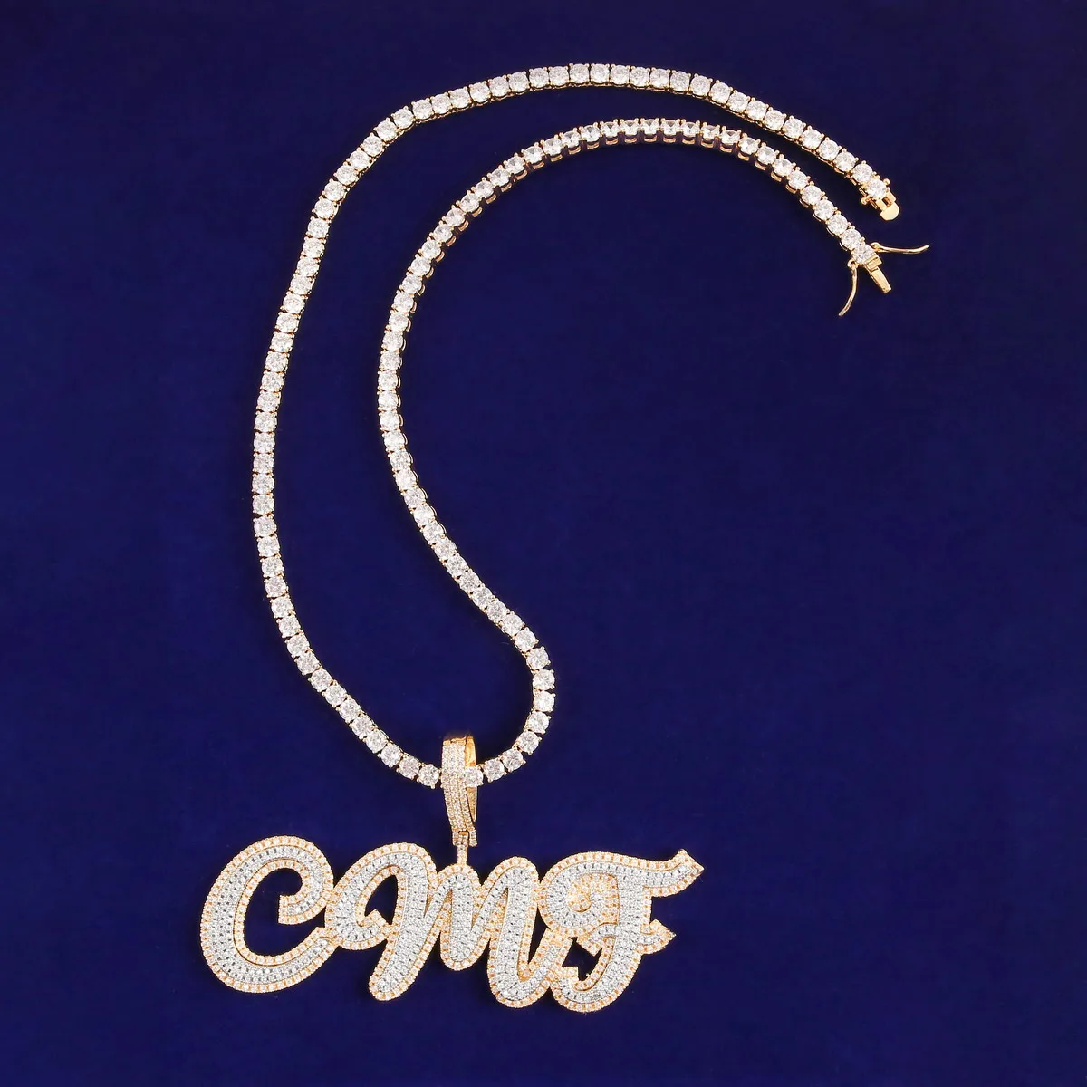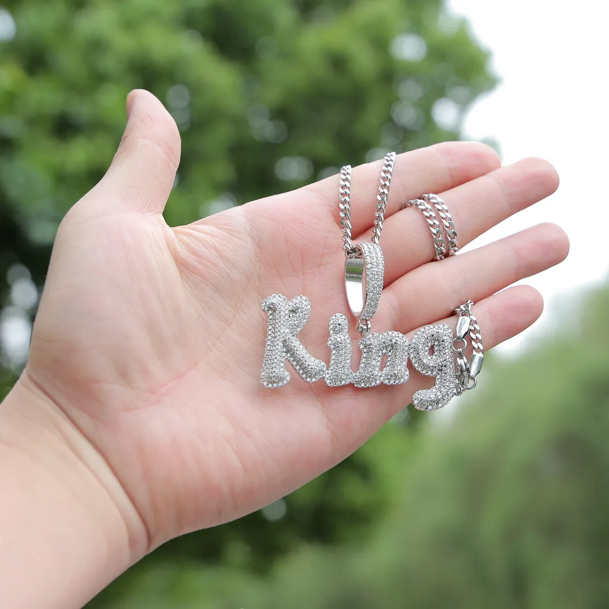 Custom Name Cursive Letters Pendants Necklaces Men's Zircon Hip Hop Jewelry
