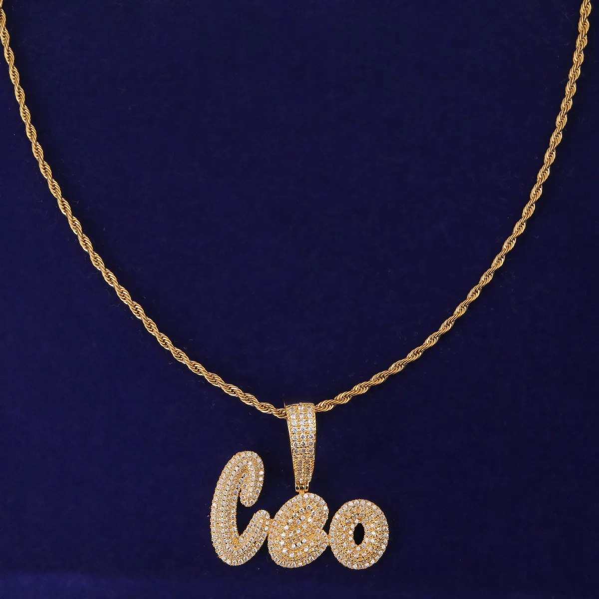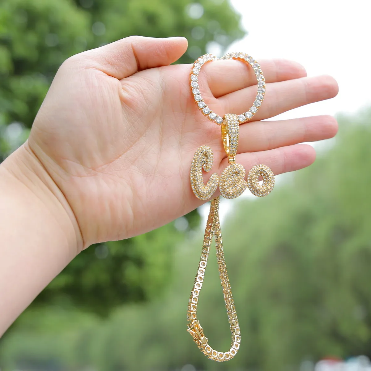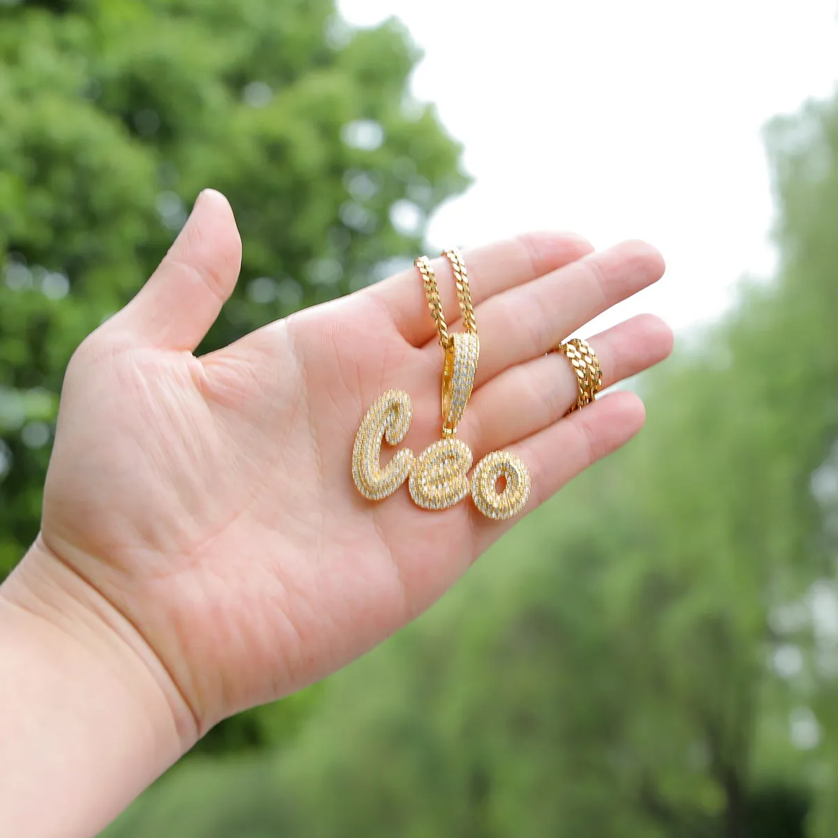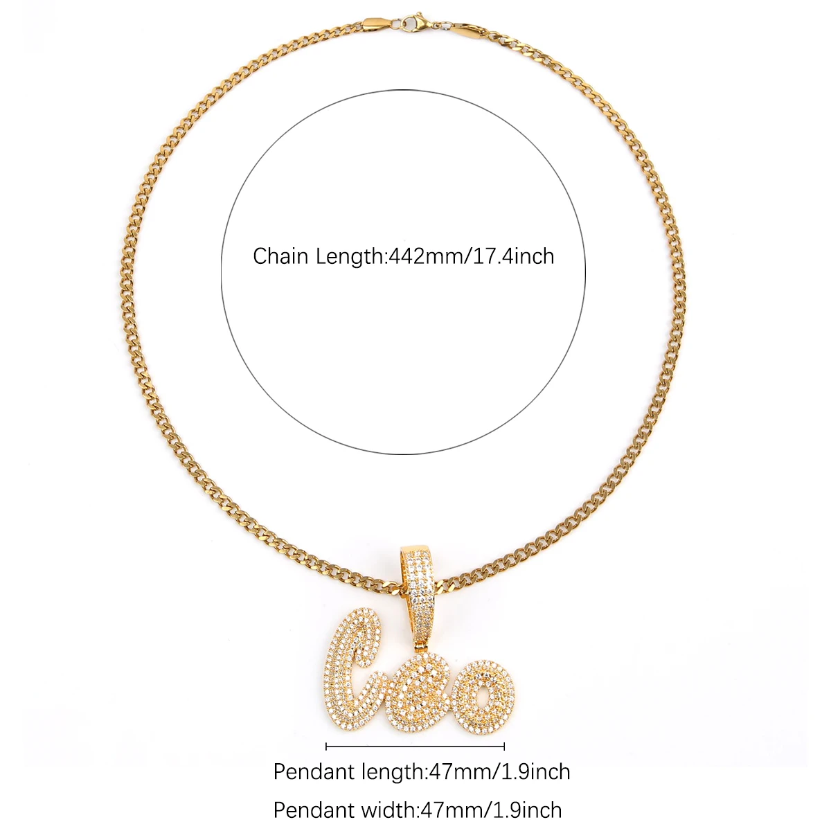 Custom Name Cursive Letters Pendants Necklaces Men's Zircon Hip Hop Jewelry