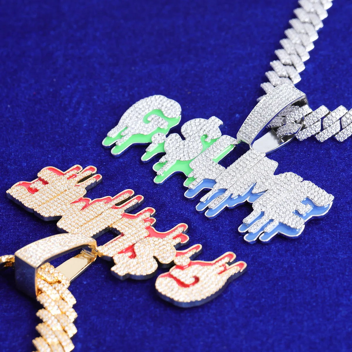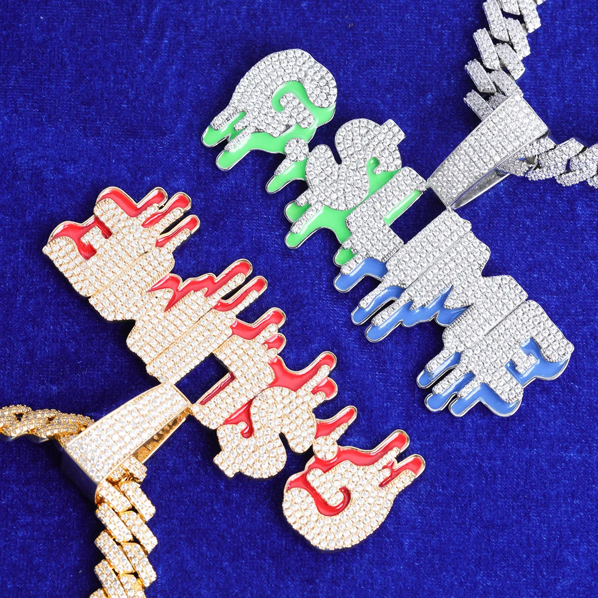 Custom Name Pendant for Men Glow In Dark Drip Real Gold Plated Hip Hop Jewelry