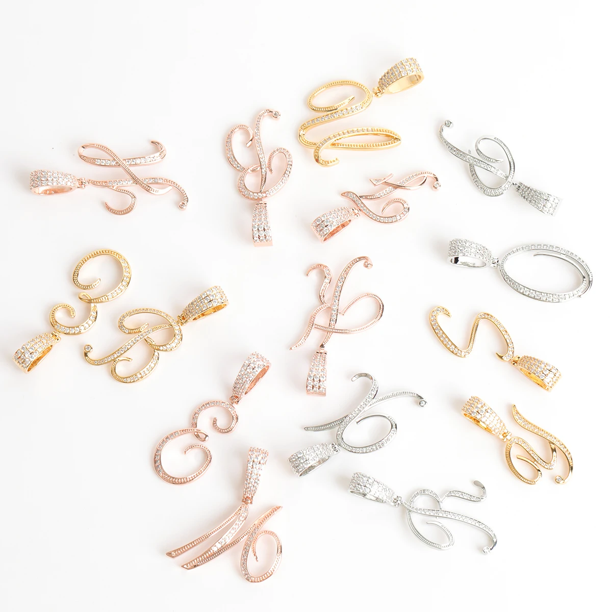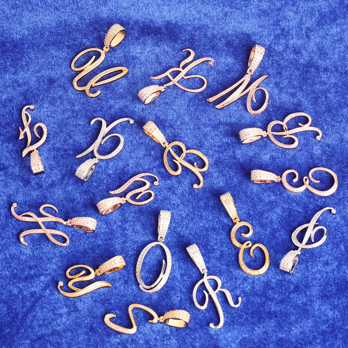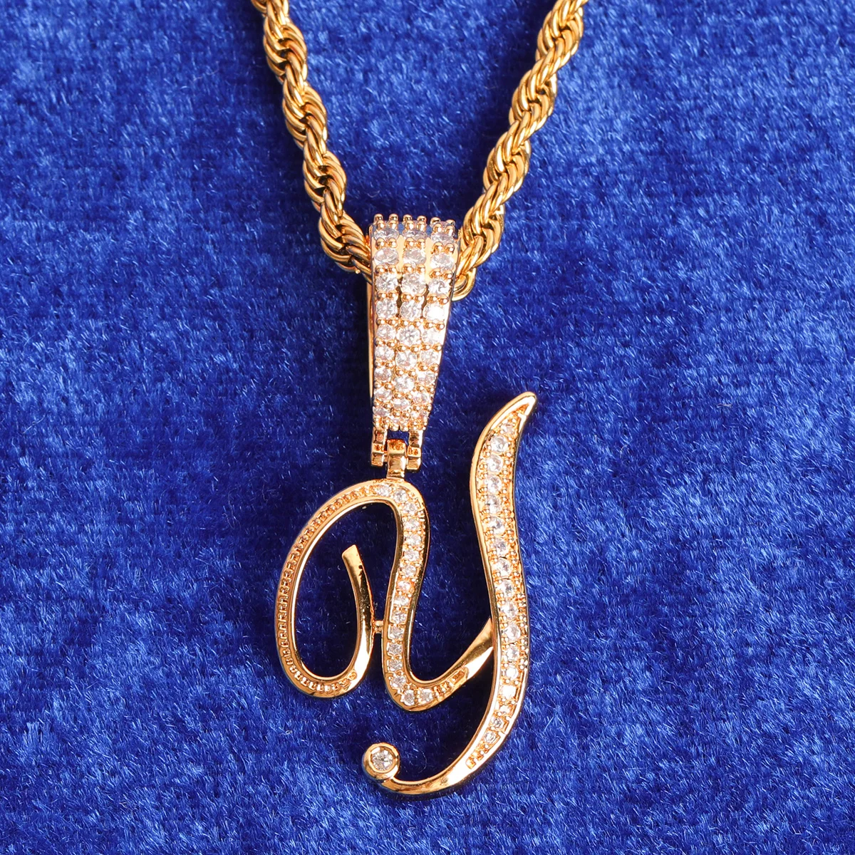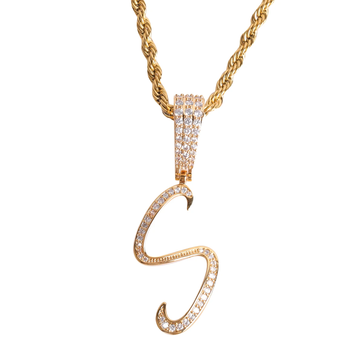 Letter Jewelry for Women Initial Cursive Real Gold Plated Hip Hop Pendant