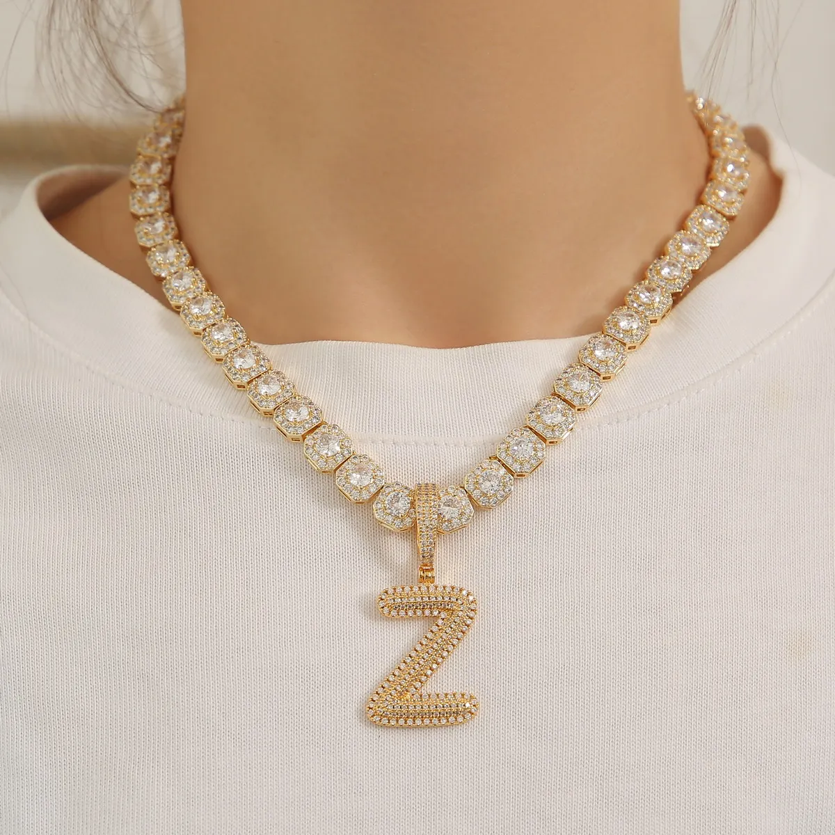 Signature Letter Soild Pendant Hip Hop Gold Color Necklace Jewelry